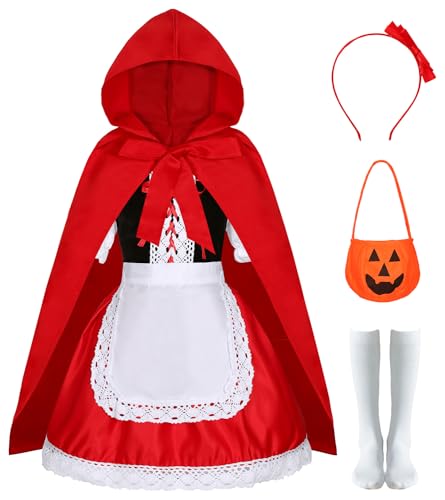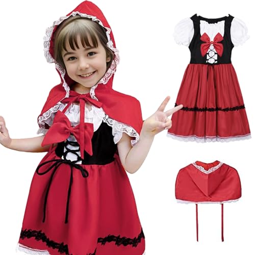 Bitte beachten Sie vor der Bestellung unsere Größentabelle. Das Überziehkleid hat einen unsichtbaren Reißverschluss zum einfachen An- und Ausziehen. Das Ensemble ist im mittelalterlichen Renaissance-Stil gehalten und hat Spitze auf der Brust und ein Kreuzband-Design sowie Spitze an den Manschetten und am Saum. 【Größe】- Dieses bezaubernde Rotkäppchen-Kostüm ist in 5 Größen erhältlich und kann von Mädchen im Alter von 3 bis 12 Jahren getragen werden. 【Märchen Design】 – Das Rotkäppchen-Kostüm für Mädchen besteht aus einem roten Kapuzenumhang und einer weißen Schürze. Kostüm: Rotkäppchen - Die Kostümprofis Rotkäppchen Kostüm Kinder Rot Umhang Mädchen Kleid mit Schürze Märchen Kapuzenumhang Stirnband Tasche Faschingskostüme Karneval Party Halloween Hochwertiges, weiches Polyester mit atmungsaktivem Tragegefühl; pflegeleicht per Handwäsche. Mit dem Rotkäppchen Kostüm Kinder können die Kleinen das Märchen nachspielen oder neu interpretieren. Vielleicht gibt es diesmal keinen bösen Wolf, sondern Ihr Hund oder Ihre Katze bekommen die Rolle des Bösewichts in einer inszenierten Privatvorführung von Rotkäppchen bei Ihnen zu Hause 【Materialien】 – Die rote Kapuzenmütze und der Rock sind aus hochwertigen Materialien gefertigt. Liebevolle Details: Rüschenrock, schwarze Schnürriemen und quadratischer Ausschnitt für märchenhaften Look. Festas Gurca Kostüm, Rotes Rotkäppchen Damenoutft mt Umhang und... Kostüm Mädchen Rotkäppchen Festas Gurca Kostüm, Rotes Rotkäppchen Damenoutft Mt Umhang Und Kapuze Stilvolles Kleid Rotkäppchen Kostüm Kinder