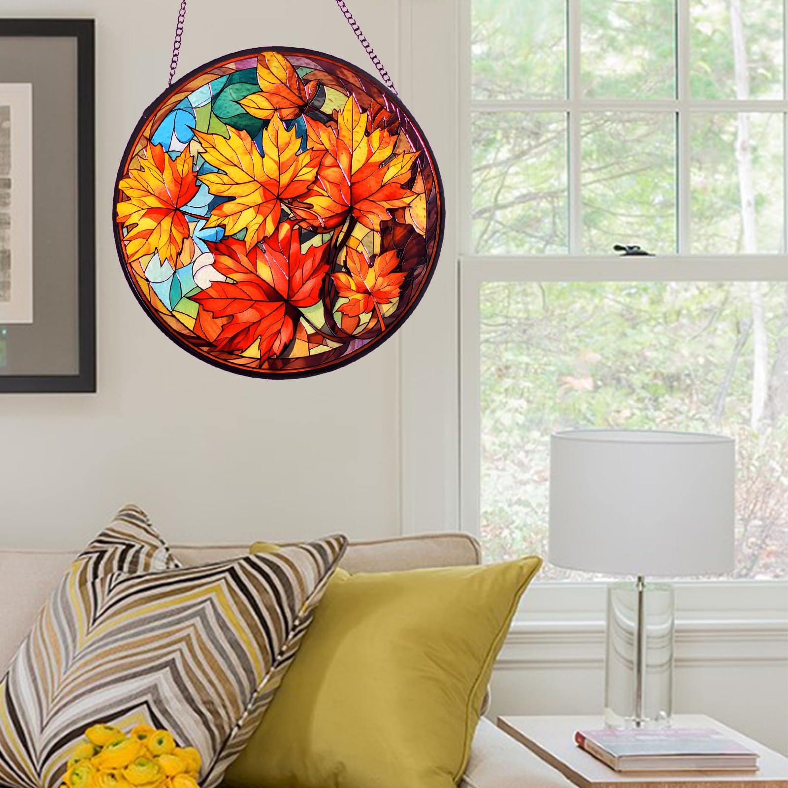 Sie können das Panel einfach überall aufhängen, wo Sie es bevorzugen – Küchenfenster, Fenster im Obergeschoss, Kreiskopffenster, Frontfenster, Schlafzimmerfenster, Glasschiebetüren und Küchentüren usw. Größe:20cm/8inch Lieferumfang: 1 x Buntglas-Fensterhandhabung, 1 x Metallkette. Sonnenfänger Raven - Mystisches Buntglas für Ihr Zuhause Ein einzigartiges Geschenk: Dieser Sonnenfänger zum Aufhängen von Buntglas ist ein schönes Geschenk für Ihre Freunde, Familie, Liebhaber usw. Innen- und Außendekoration: Kreative Krähe und Rabe zum Aufhängen von Fenstern für Schlafzimmer, Bad, Küche, Café, Büro, Klassenzimmer, Veranda, Balkon usw. Krähen gefärbter Acryl-Sonnenfänger, Fensterschmuck für Vogelliebhaber, Halloween-Herbstweihnachtsdekoration für Zuhause RIVEENY Buntglas-Sonnenfänger, Vögel auf Ast, 20,3 cm, Buntglas-Fensteraufhängung, doppelseitige Glasscheibe, Fensterdekoration, Vogel-Ornament Besonderheiten: - Hergestellt aus echtem handbemaltem Glas mit einem sicheren Metallrand und einem Rabe auf dem Ast in der Mitte. Fensterbilder Glas Krähen Bunt Sonnenfänger, Krähen Fensterbild, Krähe Rabe Wand Dekor Für Suncatcher Fenster Krähen- und Raben-Wandkunst: Inspiriert von den Krähen und Raben als Symbole für Intelligenz, Anpassungsfähigkeit und Kreativität. Sonnenfänger-Buntglas: Der Fensterbehang ist aus hochwertigem Buntglas hergestellt, einzigartige handgefertigte Dekoration, das Krähenmuster ist einzigartig und auffällig, exquisit und schön, es ist eine gute Wahl für die Dekoration eines Hauses. Der schwarze Vogel-Sonnenfänger misst ca., 19,8 cm im Durchmesser. Perfekt für Vogelliebhaber und Herbst-Halloween-Erntedank-Dekorationen Die Glasdekoration fängt Sonnenlicht ein und bringt Vitalität und Farbe in Ihr Zuhause Warnhinweise Erstickungsgefahr: Außerhalb der Reichweite von Kindern und Haustieren aufbewahren. Ideales Geschenk für besondere Momente: Machen Sie jeden Anlass unvergesslich mit unserem Buntglas-Sonnenfänger. Perfekt für Geburtstage, Muttertag, Valentinstag und saisonale Feiern wie Halloween, Weihnachten und Thanksgiving. Es ist ein einzigartiges und aufmerksames Geschenk für Hochzeiten, Jubiläen, Einweihungspartys und Abschlussfeiern Buntglas zum Aufhängen für Fenster: Das Buntglas mit Raben- und Krähenmuster ist 20 x 20 cm, ausgestattet mit einer Kette, die Größe beträgt 34 cm. Dieses schöne geisterhafte Gothic-Dekor ist eine sehr ausdrucksstarke Fenster- oder Wanddekoration. Die Buntglasscheibe wird mit einer Metallkette geliefert.