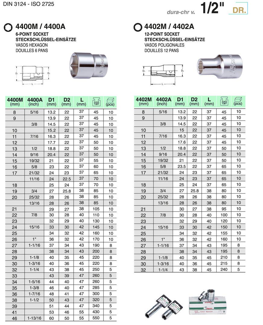 Hans Werkzeuge haben die Freigaben der Automobil- und Luftfahrtindustrie. Die Herstellung ist zertifiziert nach DIN EN ISO 9001., Prüfzeugnisse sind vorhanden. DIN und ANSI werden jeweils um mindestens das 1,4 fache übertroffen. MARKE: Hans ist die gemeinsame Premiummarke einer der größten Werkzeughersteller der Welt mit einem Sortiment von über 10., 000 Produkten. ANWENDUNG: 6-kant Steck-Schlüssel-Einsatz für den Dauereinsatz im Industrie- und Automotivebereich. QUALITÄT: Für Hans Prdukte werden spezielle, hochlegierte CrMoV-Werkzeugstähle verwendet. Hans ist die gemeinsame Premiummarke einer der größten... Universal Steckschlüssel Einsätze 1/2" Kraft-Steckschlüssel-Einsatz WGB, 21 Mm, 6-kant | AT Nuss 21mm