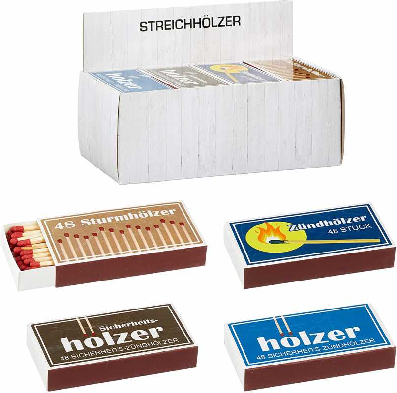 100 mm lange Streichhölzer mit rotem Kopf - Ideale Länge für den Karmin oder Kerzen Anzünden Lieferumfang: 5 Schachteln XL-Streichhölzer mit unterschiedlichen Weihnachst Motiven (5x45 = 225 Zündhölzer). Zufällige Auswahl, vereinzelt können auch weitere Weihnachtsmotive in diesem Set sein. Allein der Geruch erinnert viele an Ihre Kindheit. So ist es kein Wunder, das wir unsere Weihnachtshölzer ganz jährlich im Programm haben. So kommen Sie bei großen Kerzen oder auf dem Tischkranz viel einfacher zurecht. Daneben sehen sie auch noch ganz toll aus und eignen sich neben dem Feuer machen natürlich auch zu Deko Zwecken. Motive einseitig - Rückseite Infos. Motive einseitig - Rückseite Infos. 1x Streichhölzer im Retro-Design, 48 Stück Sicherheits-Zündhölzer esschert desgn Feuerschale lange Strechhölzer 20 cm ca 10 Stk... Pro Bestelleinheit 5x45: = 225 XL-Streichhölzer mit tollen weihnachtlichen Motiven Lange Streichhölzer VBS Aufbewahrungsbox Strechholzschachteln, XL Kraftpaper Blanko 11 Cm X 6 5 Cm X 2 Cm 24er Pack Streichholzschachteln Blanko at Nicht nur zu Weihnachten erfreuen sich Zündhölzer mit schönen Motiven immer größerer Beliebtheit. Sorgt in der Gastronomie und zu Hause für ein lauschiges Ambiente Die Sicherheitszündhölzer haben eine Länge von 100 mm. jameitop® 5 x 45er Packungen Streichhölzer Diese wunderschönen Schachteln eignen sich neben dem Feuer Anzünden natürlich auch ganz toll zur weihnachtlichen Dekoration. Altbewährte Qualität in schöner Aufmachung wie: Weihnachtsmann / Kerzen / Adventskranz / Schnee