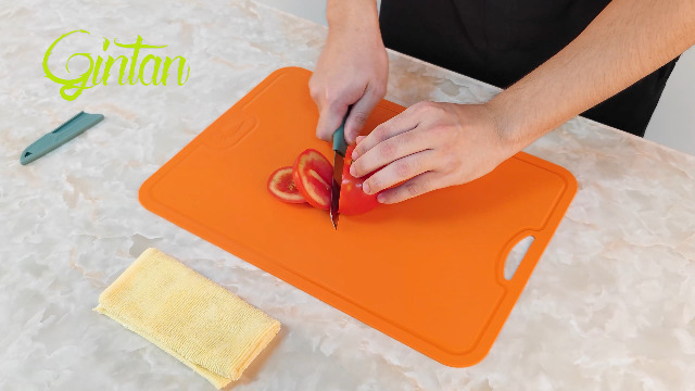Gintan Flexibles TPU Schneidebrett, BPA-frei, Mit Messer- Und Saftrille, Kratzfeste Flexible Schneidebretter Für Die Küche, Spülmaschinenfest, Griffiger Griff, Rutschfest (Orange