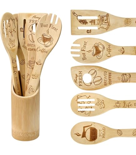 【100% natürlicher Bambus, sicher und umweltfreundlich ohne Beschichtung】: Unsere gravierte Holzkochlöffel sind aus lebensmittelechtem natürlichem Bambus, keine Farbe, kein Wachs, keine Zusatzstoffe, Hochtemperatur-Kochen ohne Geruch; Hitzebeständig kratzfestes Design kompatibel mit Antihaft-Pfannen und andere Arten von Kochgeschirr, Braten und Backen ohne Sorge, Bewachung der Familie Ernährungssicherheit Verstaut und reinigt in Sekundenschnelle, Ständer aus Bambus: 【Kaffee Thema Lasergravur, zart und praktisch mit einem Gefühl der Zeremonie】: Exklusive Lasergravur von Kaffeebohnen, Latte Tassen und andere Muster und „COFFEE“ Text, klare Textur verschleißfest und nicht abfallen, Hervorhebung der natürlichen Textur von Bambus und matte Textur. Holz Kochlöffel GLOBLELAND 6 Stück Krone Bambus Kochutensilien Königin König Holzgravur Kochlöffel Set Gravur Schnitzerei Küche Bambus Spatel Set Für Küche Housewarming Geschenk Mutter Freundin Frauen Holzkochlöffel Set Portabilität: Kann von der Küche zum Grill mitgenommen werden. 100% natürlicher Bambus, sicher und umweltfreundlich ohne Beschichtung Unsere gravierte Holzkochlöffel sind aus lebensmittelechtem natürlichem Bambus, keine Farbe, kein Wachs, keine Zusatzstoffe, Hochtemperatur-Kochen ohne Geruch; Hitzebeständig kratzfestes Design kompatibel mit Antihaft-Pfannen und andere Arten von Kochgeschirr, Braten und Backen ohne Sorge, Bewachung der Familie Ernährungssicherheit, Fünf Designs, um alle Kochszenarien abzudecken Das Set besteht aus 5 geteilten Löffeln, einem Spatel mit einem Loch, einem festen Löffel, einem Spatel mit Schlitz und einem Schlitzlöffel, die zum Braten, Rühren, Abgießen von Öl, Servieren von Suppe usw. Gabellöffel - Perfekt für Nudeln und Salate. - Paellas : - Tortillas : - Eintöpfe Die Details sind in der täglichen Kochszene integriert, geeignet für moderne minimalistische Küchen, das Hinzufügen einer leichten und luxuriösen Atmosphäre in der Küche Friends TV Show Kochutensilien aus Holz, Neuheit Freunde TV Show Home Küche Decor graviert verbrannte Natur Bambus Löffel Spatel, perfekte Geschenke für Männer und Frauen(5 Stück Das ideale Detail für Küchenliebhaber 【Kaffee-Kultur-Thema Design, praktische und Ästhetik Fusion】: 5 Stück Kochlöffel + Bambusrohr komplette Kombination, keine zusätzliche Konfiguration; Kaffee-Thema Design direkt auf die Bedürfnisse der Enthusiasten, geeignet für die Küche zu Hause, Café, Camping-Szene; natürliche Bambus Geschenk unterstreicht den Geschmack, als eine Hochzeit Hauseinweihung, Urlaub Geschenk, die natürliche Ästhetik des Lebens und Sinn der Zeremonie zu vermitteln √Umweltfreundliches Material: 100% natürlicher Bambus. Fester Löffel - Zum Anrühren von Soßen und Eintöpfen. Eleganz für Ihre Küche √Inklusive Ständer: Halten Sie Ihre Küche aufgeräumt und elegant. Spatel mit einem Loch - Ideal zum Wenden von Omeletts. Natürliches Bambusholz: Sicher und multifunktional 5 UNENTBEHRLICHE UTENSILIEN: Schaumlöffel - Für spritzerfreies Braten. Überrasche deine Mama mit einem liebevoll gravierten Kochlöffel aus hochwertigem Naturholz. Die feine Gravur „Bei Mama schmeckt es am besten" macht dieses Küchenutensil zu einem ganz besonderen Erinnerungsstück – ideal als Weihnachtsgeschenk, zum Geburtstag oder einfach als kleine Aufmerksamkeit zwischendurch √Robust: Hält Braten, Backen und intensivem Kochen stand. Schnelles Trocknen ohne Verziehen. Holzlöffel oval 30 cm aus Buchenholz aus ökologisch nachhaltiger Forstwirtschaft. Kochlöffel sind lebensmittelecht und für den Haushalt, Bastelbedarf oder als Werbeartikel geeignet. Der Artikel eignet sich besonders gut für die Lasergravur Ihres Logos, Namens, Textes oder Grafik auf dem Stiel Dieser Artikel ist nicht spülmaschinengeeignet verwendet werden können. Kochen ohne Limits: Sicher und gesund, Frei von Chemikalien:, Thermische Beständigkeit, Verschiedene Verwendungen: