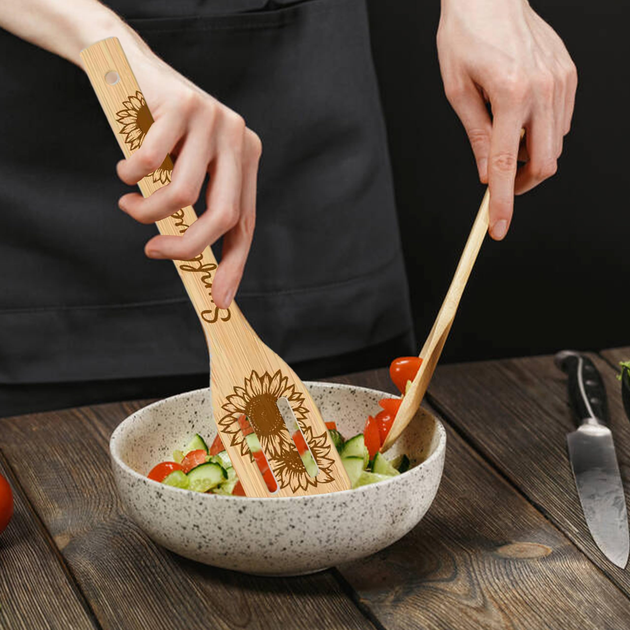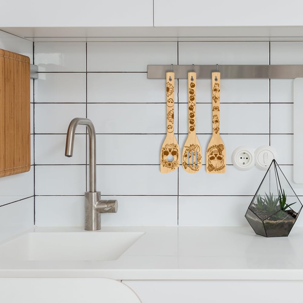 GLOBLELAND 6 Stück Krone Bambus Kochutensilien Königin König Holzgravur Kochlöffel Set Gravur Schnitzerei Küche Bambus Spatel Set Für Küche Housewarming Geschenk Mutter Freundin Frauen