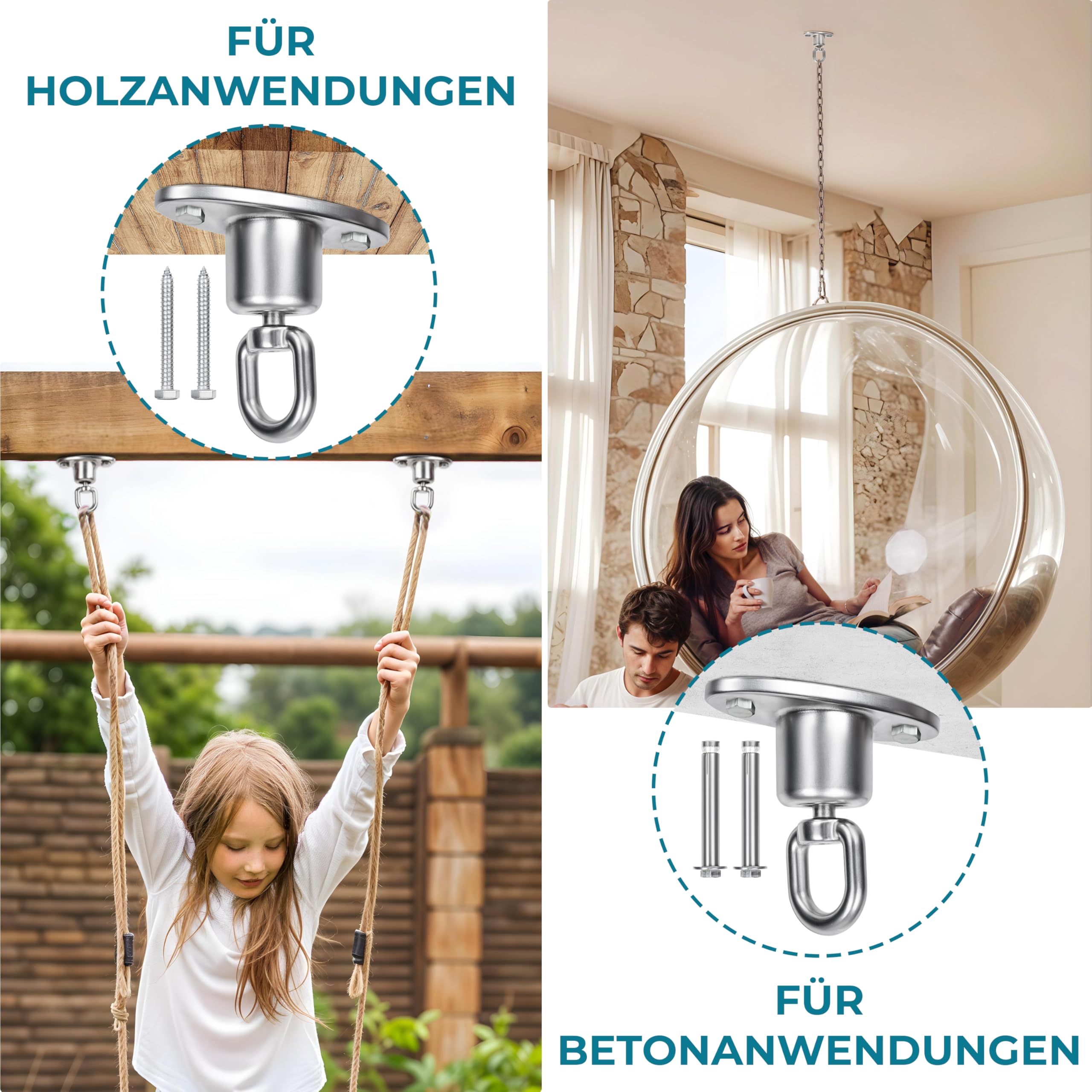 Dakzhou 2 Permanente Anti-Rost-Kugellager Swing Hanger Dämpfer (10 Mm) 180° Schaukel, 680 Kg, Sandsack Yoga Schaukel Hängematte Stuhl