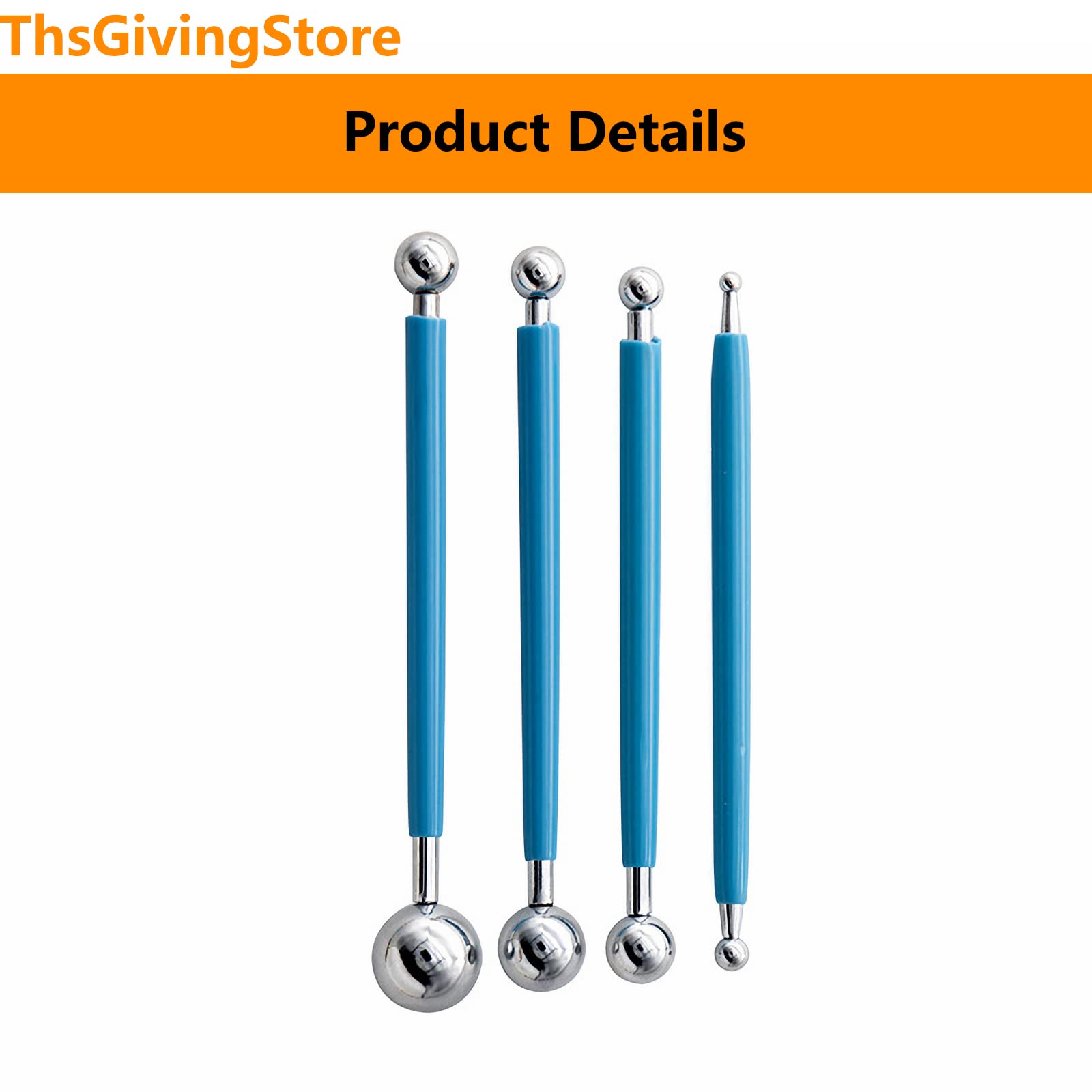 Modellierkugel-Werkzeug-Set, 4 Stück, Edelstahl, Doppelseitige Kugeln, Modellierwerkzeuge Für Kuchen, Dessert, Süßigkeiten, Fondant, Blume, Modellierwerkzeuge Zum Formen Und Modellieren (blau