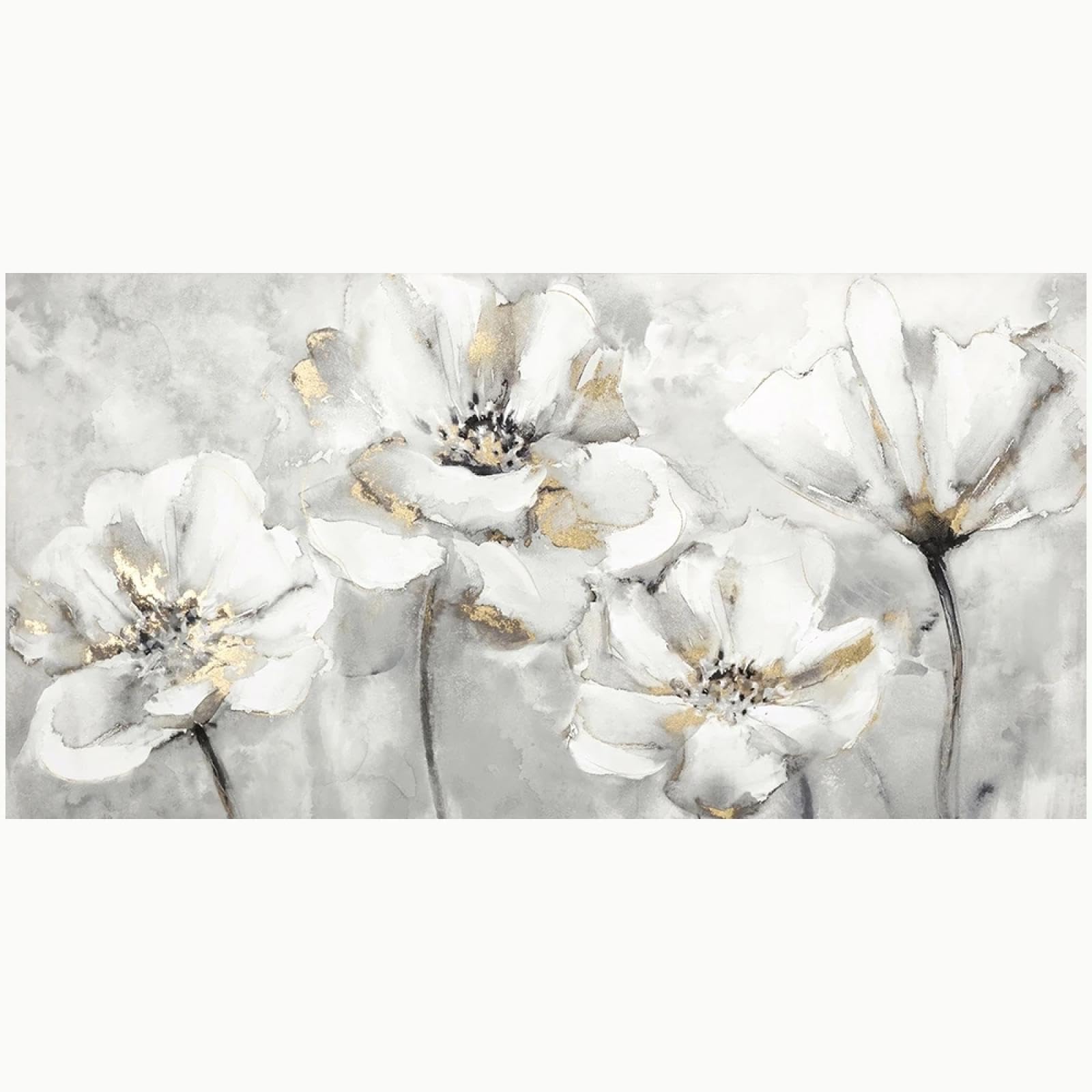 Chic Schwarz, Gold Und Weiß Leinwand Kunst | Abstrakte Blumen Wanddeko | Moderner Stil Für Zuhause Oder Im Büro - Österreich