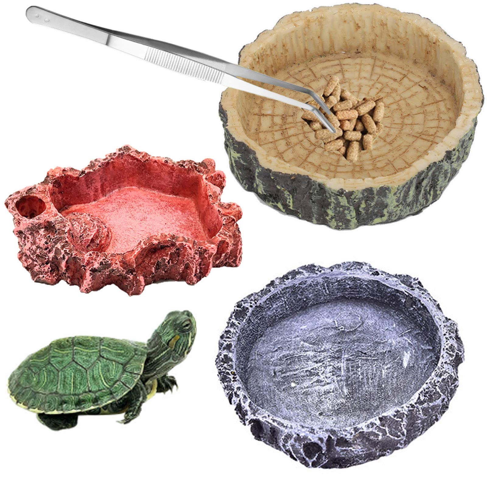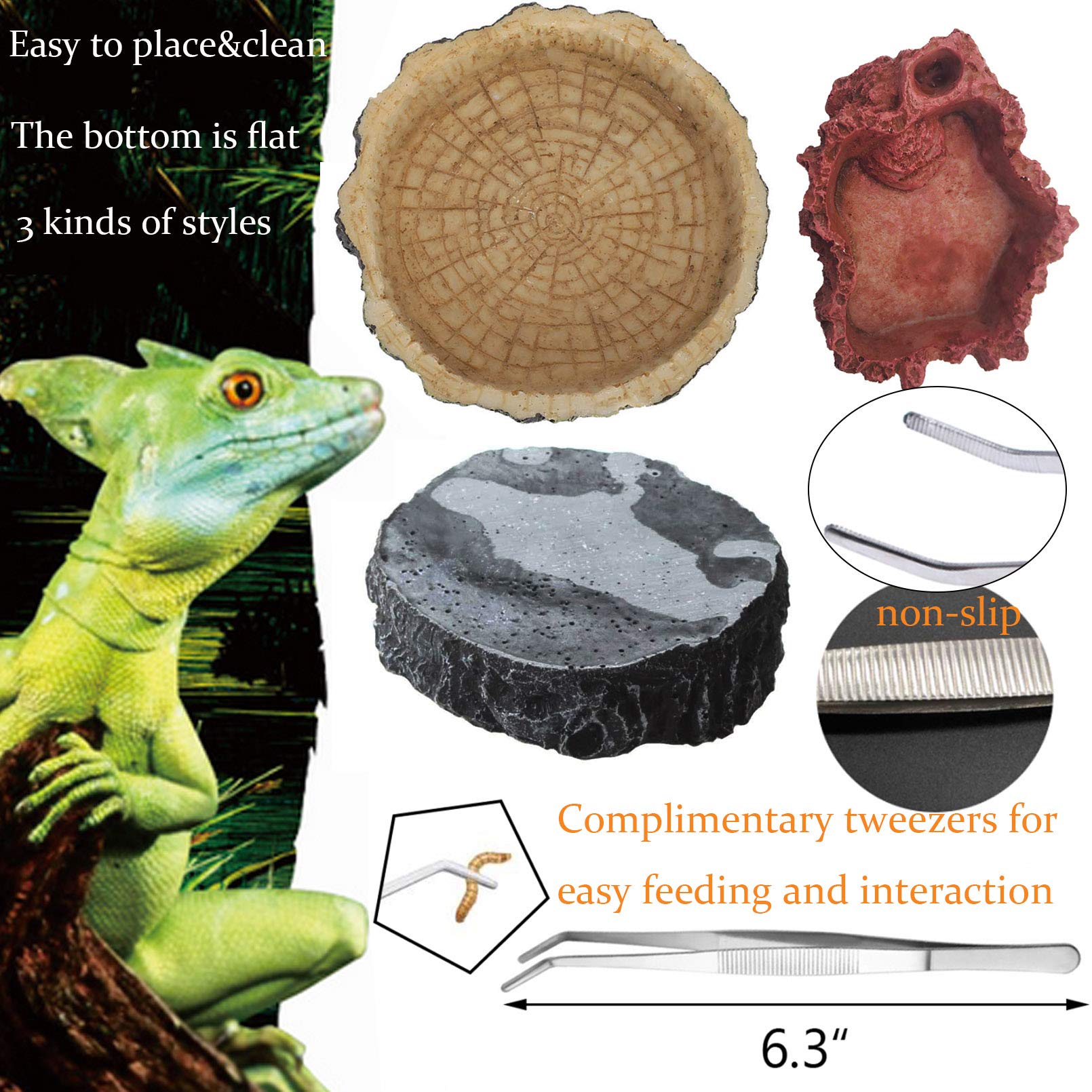 Reptilien-Wassernapf Aus Kunstharz, Für Kleine Reptilien Wie Junge Bartagamen, Frosch, Gecko, Eidechsen, Kleine Schlangen, Haustierschildkröten, Chamäleon Mit Futterpinzette, 3 Stück