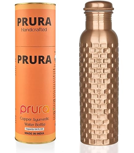 Diese hochwertige Kupfer Trinkflasche verbindet traditionelles Handwerk mit modernem Design. Sie wurde aus 100 % reinem Kupfer gefertigt und ist ein stilvoller Begleiter – ob unterwegs, im Büro oder zuhause Wir haben eine Wasserflasche aus Kupfermaterial. Nehmen Sie Ihre ayurvedische Flasche mit Vertrauen zu Yoga, Pilates, Spin, Klasse, Arbeit oder ins Fitnessstudio. Verschwenden Sie keine Zeit mit der Bestellung und Rückgabe von minderwertigen Imitationen. Wasserflasche aus 100 % reinem Kupfer Mit einem verbesserten auslaufsicheren, wasserdichten Schraubverschluss bleibt Ihr Wasser immer dort, wo es hingehört, auch wenn die Flasche auf dem Kopf steht Unsere Flaschen sind für Ihren aktiven Lebensstil konzipiert. Kupfer Trinkflasche im Test: Die besten Modelle für spirituelle Reinigung und Energiefluss Kupfer Trinkflasche Handgefertigte Reine Kupfer Einfache Thermosflasche 1L Kupferflasche Blume Des Lebens Trinkflasche aus reinem Kupfer, 1 Liter, gehämmertes Design, ayurvedisches, auslaufsicheres Kupfergefäß für Trinkwasser, gelenkfrei, BPA-frei, umweltfreundlich (gehämmerte Flasche Die Reinigung eines Omnegon ist schnell und einfach, verwenden Sie einfach Zitronen- oder Essigwasser und spülen Sie sie ab, oder verwenden Sie eine Flaschenbürste mit einer milden Seife und trocknen Sie sie an der Luft.