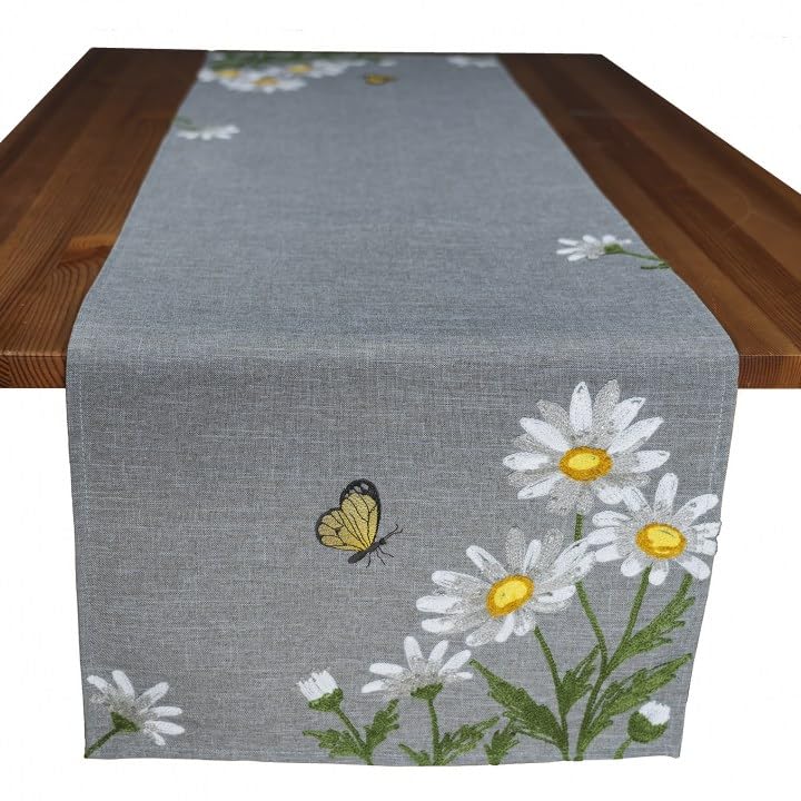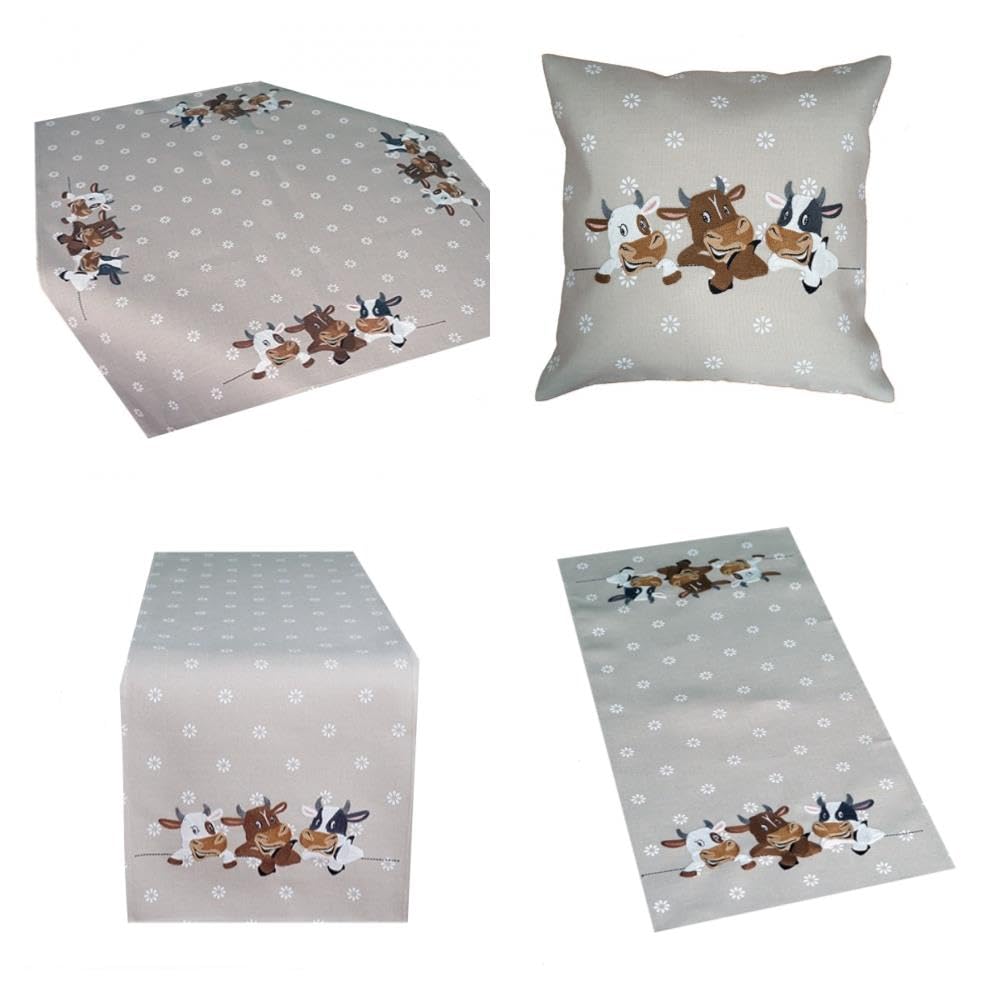 Tischdecke Mitteldecke Tischläufer Kissenhülle Kühe Kurbelstickerei Beige Braun Mit Weißen Blümchen (40 X 140 Cm