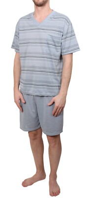 Eleganter Herren Shorty Schlafanzug Kurzarm Pyjama Mit Frontprint – Auch In Übergrössen