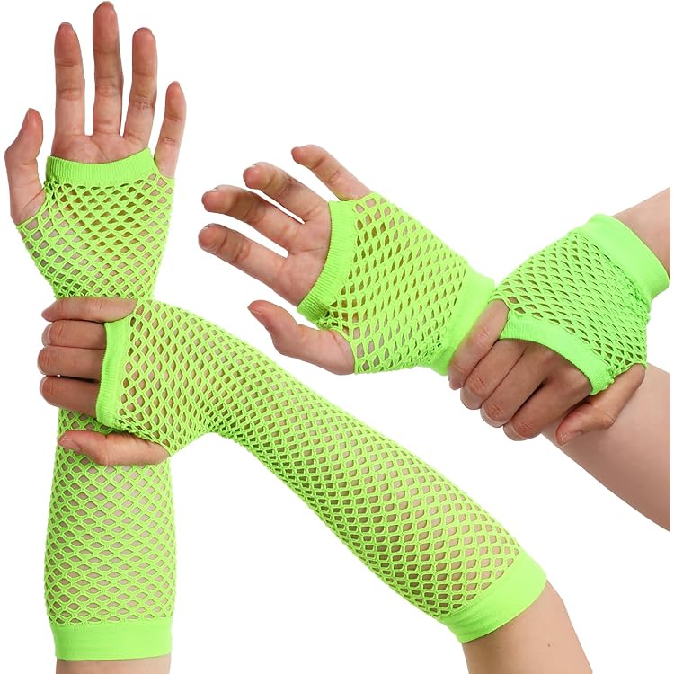 Yolev 12 Paar Neon Fingerlose Netzhandschuhe Damen Lange Kurze Netzhandschuhe Armstulpen 80er 90er Party Cosplay Kostüm Zubehör Disco Party Halloween Zubehör