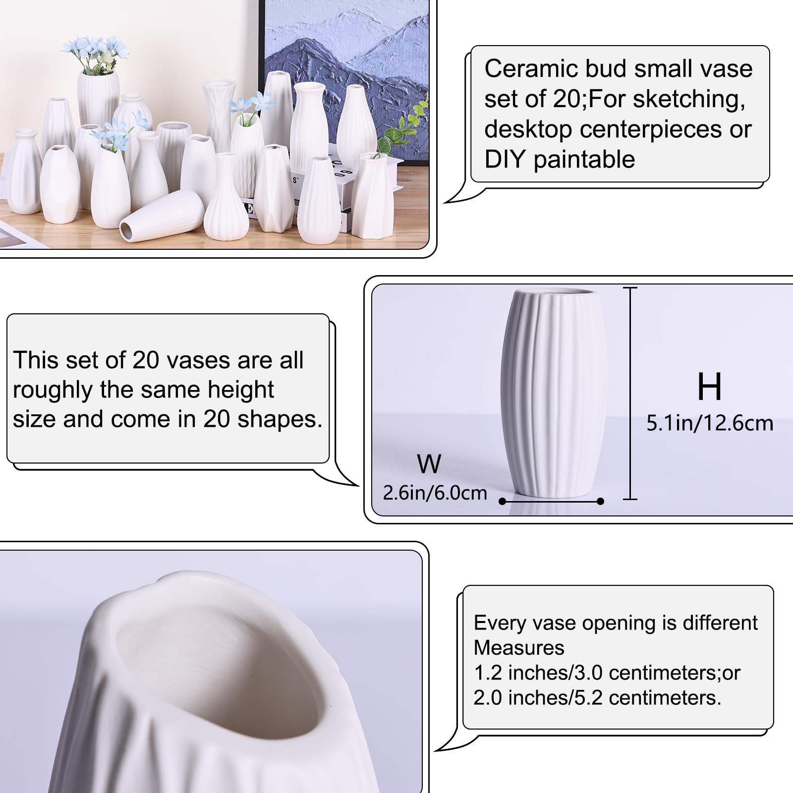 LCCCK Kleine Weiße Vasen, Set Mit 20 Stück, Für Tischdekoration