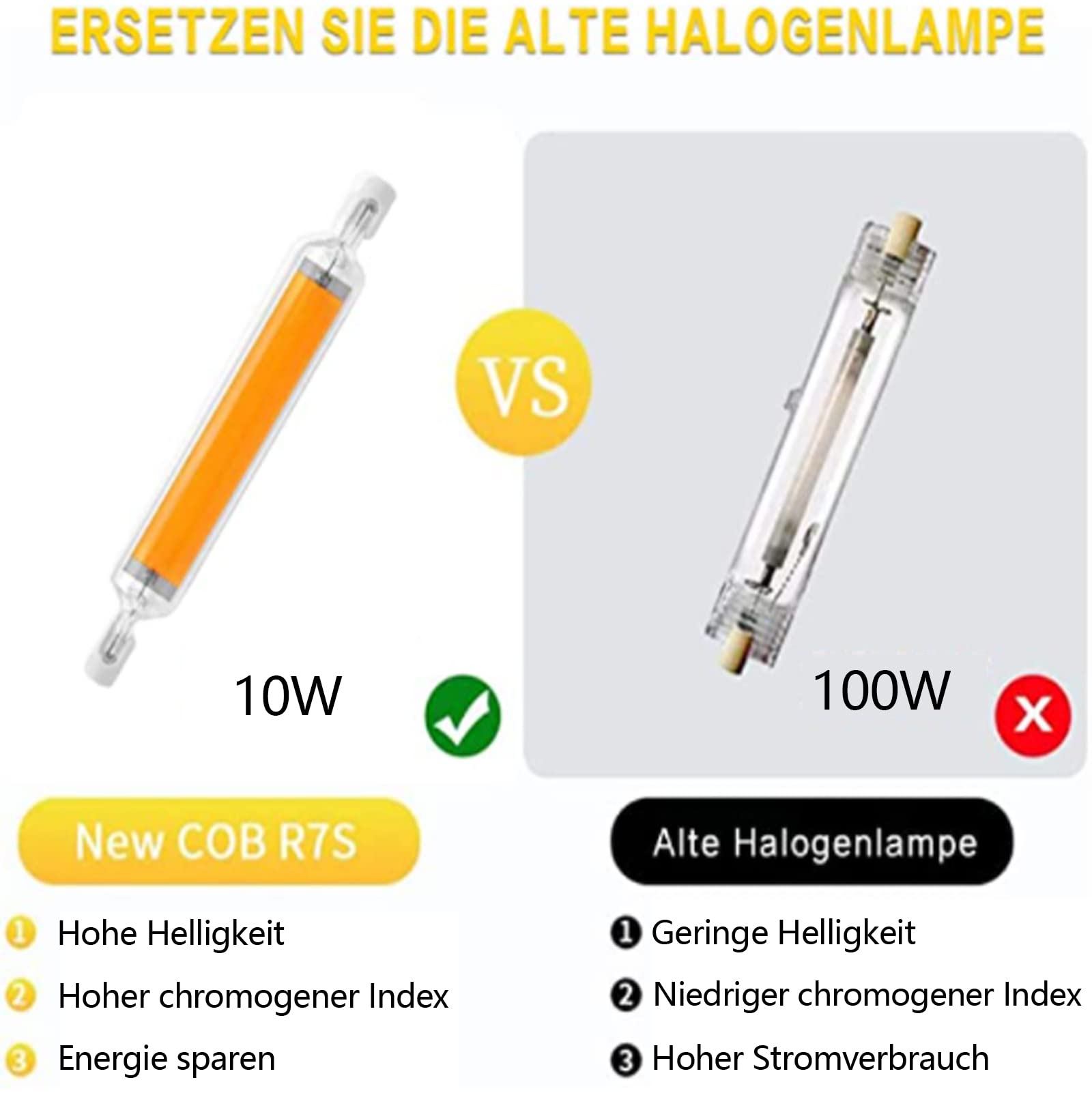 [Antrag] : R7s led lampen weit verbreitet für Innen- oder Außen-, Arbeits- und Sicherheitslichter, Werkstattbeleuchtung, Garage, Abstellraum, Bühnen- und Studiotlampe, Halogen-Lampe aus Metall, Straßenlaternen, spezielle Lichter, allgemeine Beleuchtung. [Dimmbar & Augenschutz] : LED R7S 78mm Unterstützt Dimmen. Dies kann durch hochfrequenz-vorschaltgeräte in Ihrem gerät verursacht werden. Für Stehlampe R7s led 118mm Geeignet für Innen- und außenbereiche Für Wandleuchte R7s 78mm bitte verwenden sie es nicht für längere zeit in einer geschlossenen umgebung. [Energieeinsparung] : 10W R7S LED 78mm Dimmbar Lampe, perfekter Ersatz für R7S J78 100W Halogen Leuchtmittel. R7S LED Glühbirne Einstellbar 118mm 360o 10W [10W 78mm R7S LED Light] : 10W R7S 78mm LED lampen Dimmbar Hightlight Lampen, 1000LM, Double Ended COB LED, Naturweiß 4000K mit einem Lichtstreuungswinkel von 360 Grad, sorgt für gleichmäßige Lichtstreuung. Hohe Farbwiedergabe CRI80 CRI 85 Ra, hohe farbwiedergabe, ohne blei oder schädliches quecksilber, CRI 80 sorgt für lebendigen visuellen genuss mit originalfarben. LED dimmbare Glühbirne Philips R7s/17,5W/230V 4000K 118 mm Das hochwertige Design sorgt für eine perfekte Beleuchtung Ihres Innenraums. R7S LED 78MM 118MM LAMP AEPOYU r7s led lamp 78mm 118mm 10w 20w dimmbare glühbirne vom ist aus strapazierfähigem und transparentem glas gefertigt, geringere wärmeerzeugung, 85% weniger stromkosten für die beleuchtung, verfügt über eine hervorragende wärmeleitfähigkeit kann probleme häufigen lampenwechsels verringern. Szenendiagramm Für den Flur Bitte achten sie vor dem kauf auf die größe/rahmen Es lindert sehstörungen und schützt Ihr auge. 4,0 von 5 Sternen Amazon Bestseller-Rang Nr., 187., 265 in Beleuchtung (Siehe Top 100 in Beleuchtung), Nr., 20., 327 in LED Lampen Das Keramische Materialien sorgt für eine gute Lichtdurchlässigkeit, hohe Farbwiedergabe (CRI> 80) Kompatibel mit den meisten Dimmern, der steuerbare Silizium-Tunue-Effekt ist am besten. Hohe Farbwiedergabe : R7s led 118mm lampe hat 1000 Lumen, 360 ° strahlwinkel, hohe farbwiedergabe (CRI 80), die starke natürliche farben gewährleisten und ein gefühl von komfort und entspannung schaffen., 1., Diese r7s led lampen sind 118mm * 16mm groß/78mm*16mm. Er kann die meisten standard led leuchten mit r7s fassung aufnehmen. LED dimmbare Glühbirne Philips R7s/17,5W/230V 4000K 118 mm Das hochwertige Design sorgt für eine perfekte Ihres Innenraums. Die Kategorie R7s ist Glühbirnen mit demselben Sockel gewidmet. In unserem E-Shop können Sie zwischen Glühbirnen mit herkömmlichem Glühfaden oder modernen LED-Leuchtmitteln wählen, die energieeffizienter sind und eine längere Lebensdauer haben Led R7s 78mm Preisvergleich AEPOYU R7s LED 78mm Dimmbar Hightlight Birne, 10W R7s LED R7s Led 78mm 10w Ballast führt dazu, dass led birne flimmern und sogar nicht funktionieren. Reduzieren Energieverbrauch als 86%, Mit einem Lebensdauer von bis zu 20., 000 Stunden können Sie den Aufwand der häufigem Ersetzen Ihrer Glühlampen reduzieren.