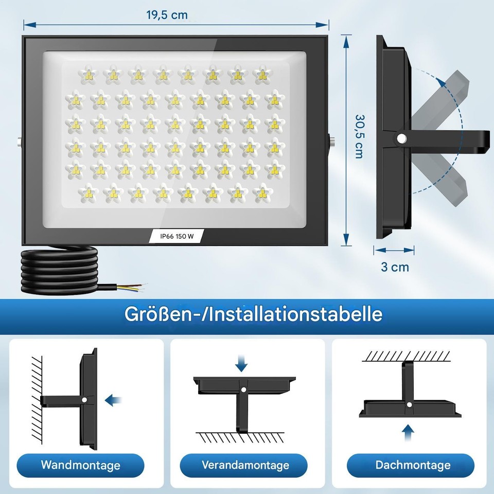 Dimmbar und verstellbar für vollständige Anpassung: Dank der einstellbaren Kapazität (30-100 %) und des verstellbaren Rahmens können Sie das Licht genau dort richten, wo Sie es benötigen. Hohe Leistung und maximale Energieeffizienz mit einem gerichteten Fokus von 40-45 Metern mit einer Reichweite von hellem und hellem Licht., Aluminium-Spritzguss-Finish. Wasserdicht und staubdicht – IP66-Zertifizierung: Dank seiner Schutzart IP66 ist dieser LED-Strahler vollständig wasserdicht und staubdicht. Led Fluter Außen LED Fluter PRO IP65 - 200W 18.000 Lumen - 6000K Tageslichtweiß Led Flutlichtstrahler Außen Dieser Strahler ist perfekt geeignet, um eine Halogenleuchte mit bis zu 800W zu ersetzen, mit der Konsequenz Einsparungen beim Stromverbrauch. Der spezielle prismatische Diffusor reduziert die Blendung, wodurch das Licht gleichmäßig verteilt wird, ohne Unannehmlichkeiten zu verursachen. Anzahl & Art der LEDs: Epistar, IP-Schutzklasse: IP66, Lebenserwartung (H): 50., 000, Farbe: Kaltes Weiß, Materialien: Aluminium/Glas, Kelvin º: 6000, Abstrahlwinkel (º): 120 Beste Preise und authentische Bewertungen für das Produkt Bot Lighting LED Flutlicht 200W Natürliches Weiß 4000K KYOTO2002G. Jetzt einfach bei kaufen Auch für industrielle Anwendungen, in Lagern oder im Freien, in Arbeitsbereichen usw. Produktbeschreibung LCB 200W Fluter 6000K– 24000 Lumen, IP66 & IK07 Suchen Sie nach extremer Leuchtkraft und robuster Zuverlässigkeit? Diese leistungsstarke 200W LED-Leuchte von unserer Hausmarke LCB ist die ultimative Lösung zur Beleuchtung großer Industriehallen, Lagerhäuser oder Außenanlagen Es ist daher geeignet für die Installation im Außenbereich. 💡 Lange Lebensdauer und thermische Effizienz: Mit einer Lebensdauer von bis zu 60., 000 Stunden reduziert dieser LED-Strahler nicht nur den Stromverbrauch, sondern sorgt auch für eine lange Leistung. Es verfügt über einen Strahler, der eine optimale Wärmeableitung garantiert. Seine robuste Konstruktion macht es perfekt für extreme Bedingungen wie Regen, Schnee oder hohe Temperaturen oder für den Einsatz in Arbeitsbereichen. Es hat einen Richtstrahler mit einer Reichweite von 40-45 Metern und einer hellen Lichtreichweite, ideal für die Außenbeleuchtung in Gärten, Terrassen, Terrassen oder anderen Außenbereichen, wo Sie eine hochwertige Beleuchtung mit geringem Stromverbrauch suchen. Entworfen für die Beleuchtung von Wänden, Türen, Pergolen, Gartenbrunnen usw. 200W LED Flutlicht Strahler Außen16000LM