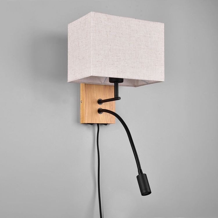Harper Living 1xE27 ES Wall Light With Adjustable LED Reading Light With Usb Port And Switch Square Fabric Shade