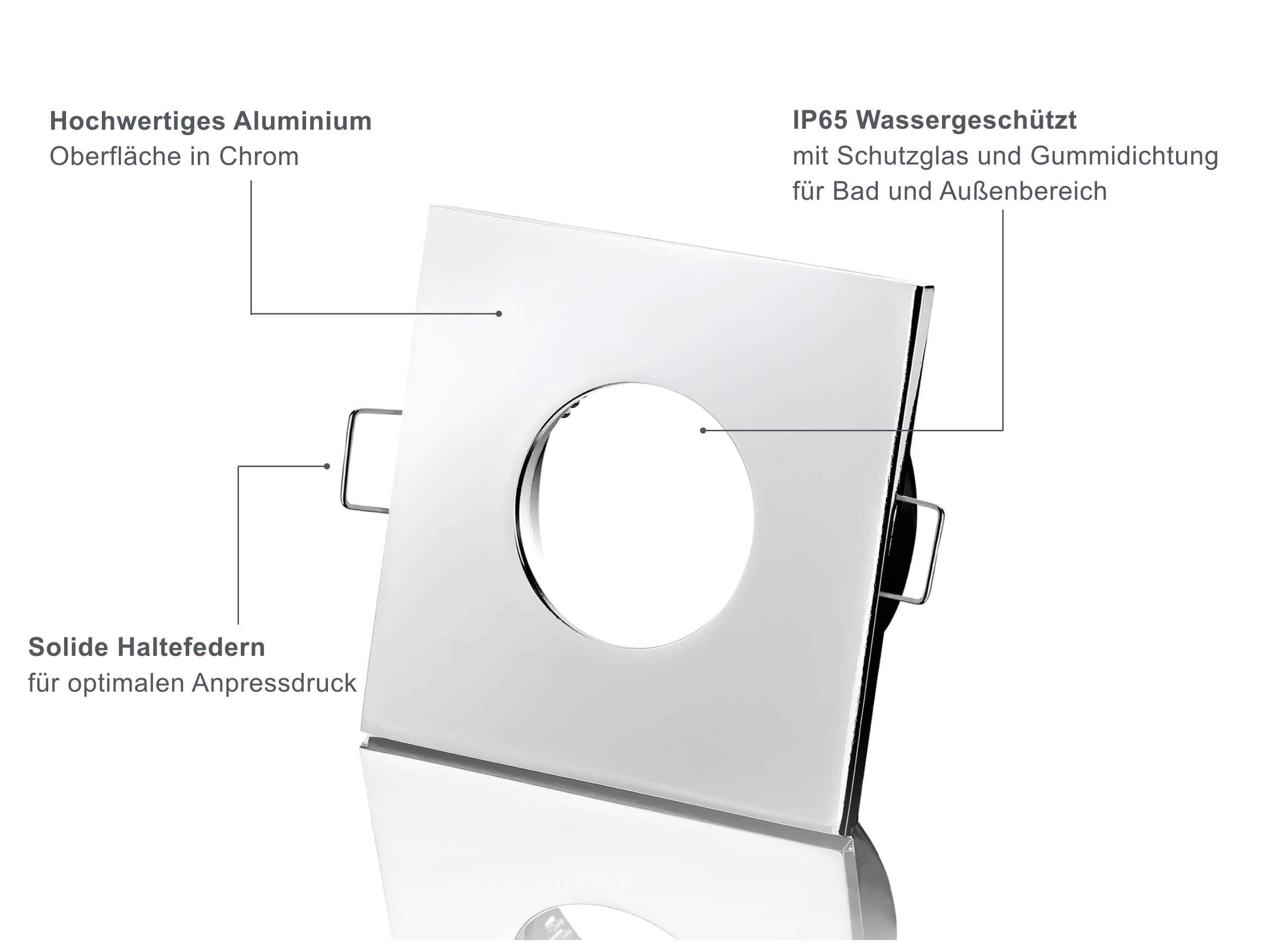 Garten/Terrasse - unsere LED Deckenspots sind strahlwassergeschützt. Led Einbaustrahler Bad 230v Ip65 Lambado® Premium LED Spots IP65 Flach Für Badezimmer In Edelstahl Gebürstet - Moderne Deckenstrahler/Einbaustrahler Für Außen Inkl. 230V 5W Strahler Neutralweiß Dimmbar - Hell & Sparsam Einbaustrahler PERFEKTE BELEUCHTUNG - Die feuchtraum LED Einbauleuchte aus solidem Aluminium in Premiumqualität bietet Ihnen überall eine moderne Optik. Dieser wasserdichte Einbaustrahler ist perfekt für das Badezimmer. Die Leuchte wird mit einer kostenlosen GU10-Fassung geliefert. Der Badezimmer-Einbaustrahler Chrom ist eine stilvolle und zeitlose Wahl für jeden feuchten Raum in der Wohnung wie das Badezimmer und die Duschkabine VIELSEITIGER EINSATZ - Ob im Badezimmer/Dusche oder im Aussenbereich wie z., B. LED & Fassung): 65mm lambado® LED Spots für Bazimmer IP65 in Alu gebürstet - Morne ckenstrahler/Einbaustrahler für Außen inkl. 230V 5W GU10 Strahler Led Strahler Lambado® Premium LED Spots IP65 Flach Für Badezimmer 230V 5W GU10 Strahler