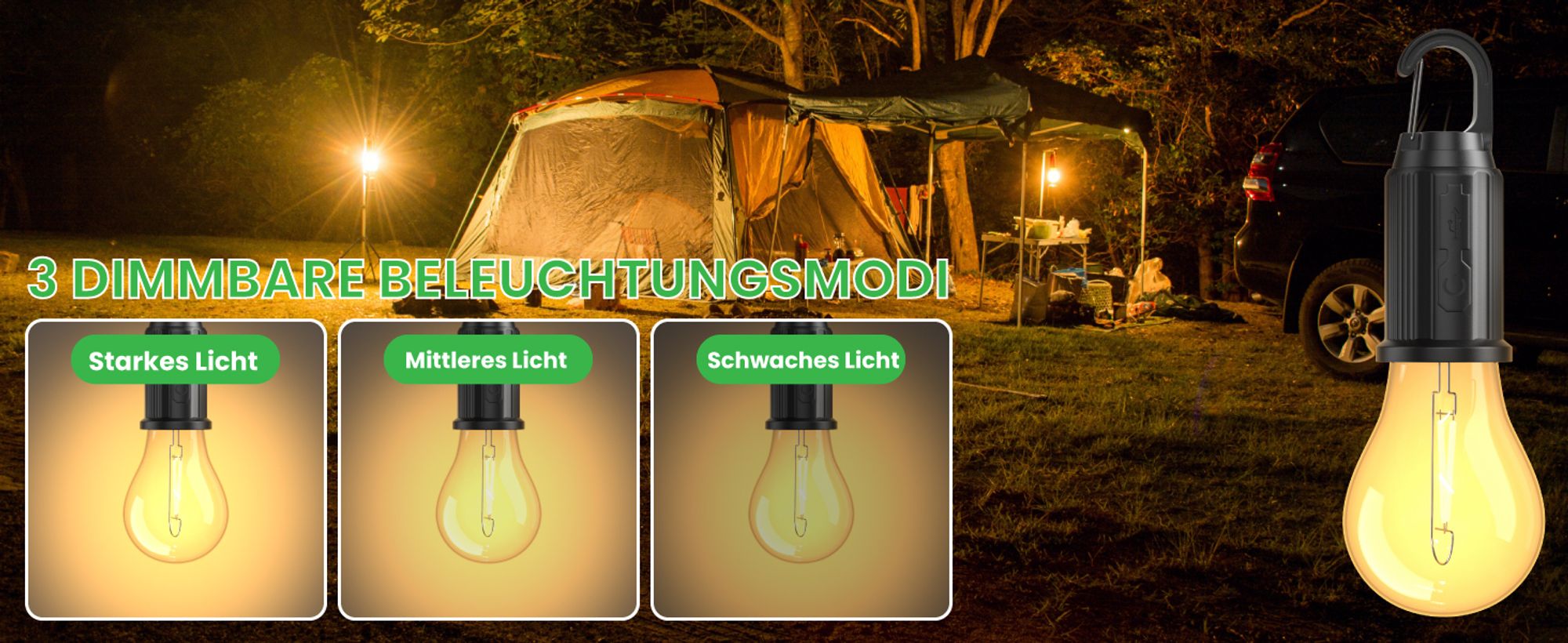 Kaufe Camping Laterne USB Wiederaufladbare Camping LED Zelt Licht Taschenlampe Lampe Für Stromausfall Im Freien Zum Preis Ab 24
