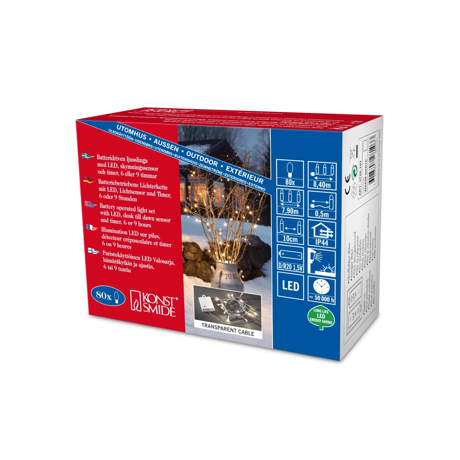 LED Batterielichterkette 80 LEDs, Außenbereich, Grünes Kabel, 50 Cm