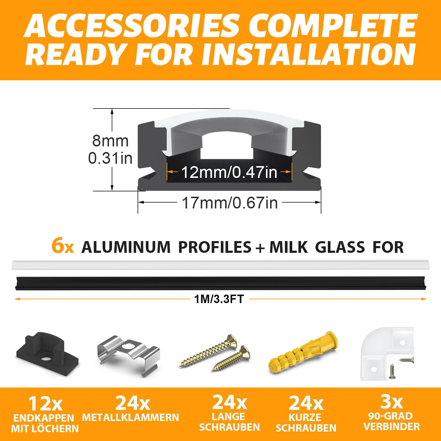 TRPA4171 | Profil en aluminium intégré pour 2 bandes LED, Profil d'aile MEDIUM, longueur 1m Die mattweiße Abdeckung kann separat erworben werden und muss mit dem Silikon in das Profil eingebaut werden. Aluminium Bodenprofil für LED-Streifen; Maße: 1000x19., 2x8., 5 mm, maximale Streifenbreite – 11 mm, Trittfestigkeit 20KN, Ohne Abdeckung und Endkappen. Die Lieferung erfolgt innerhalb Deutschlands ab einem Bestellwert von EUR versandkostenfrei Govee Led LEDsikon® LED Profil CORNER-T ALU Aluprofil Aluminium Profil 2Meter Für Led Streifen 2m Aluminium Bodenprofil für LED-Streifen , Maße: 1000x19., 2x8., 5 mm; maximale Streifenbreite: 11 mm LED Einbauprofil HR-11-1m, eloxiert-522200