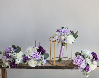 LILA HOCHZEITSSTRAUSS- Lila Hochzeit Brautstrauß, Echter Pfingstrosen- Brautstrauß, Purpur Und Minzestrauß
