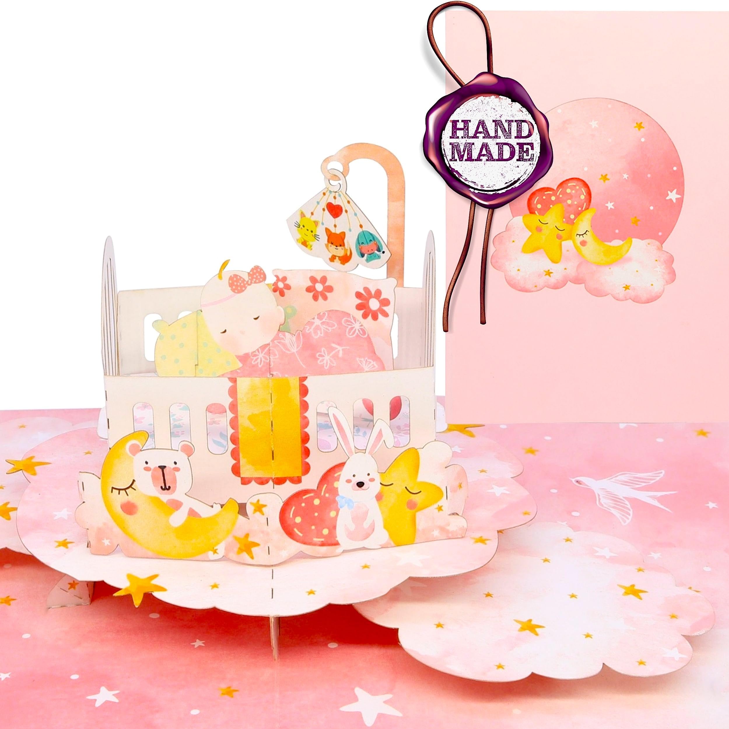 LIMAH® Pop-up 3D Karte Zur Geburt Für Mädchen - Glückwunschkarte