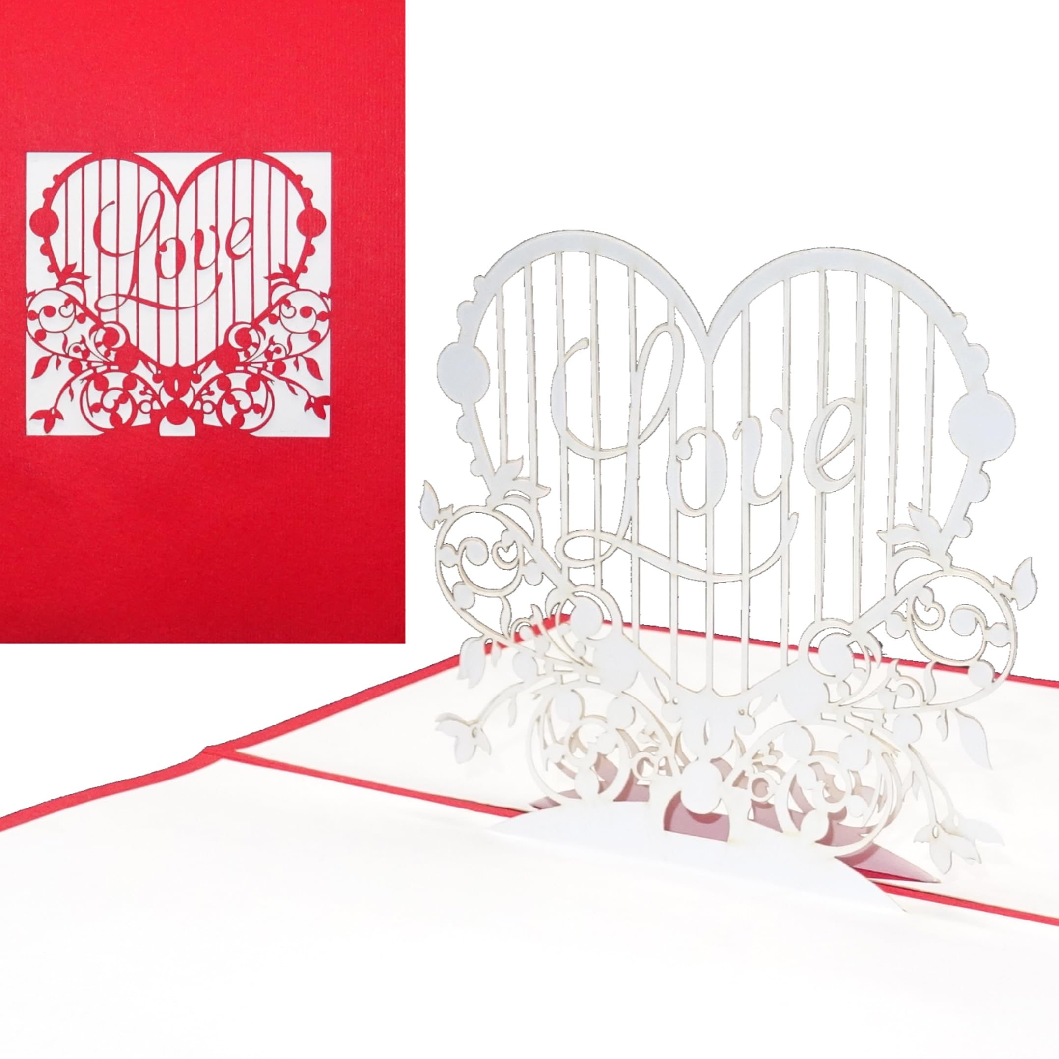 LINPopUp® 3D Karte, Hochzeitskarte, Valentinskarte, Herzblumen - Pop-Up Karte - 3D Grußkarte Von LINPopUp Hier Im Onlineshop Kaufen