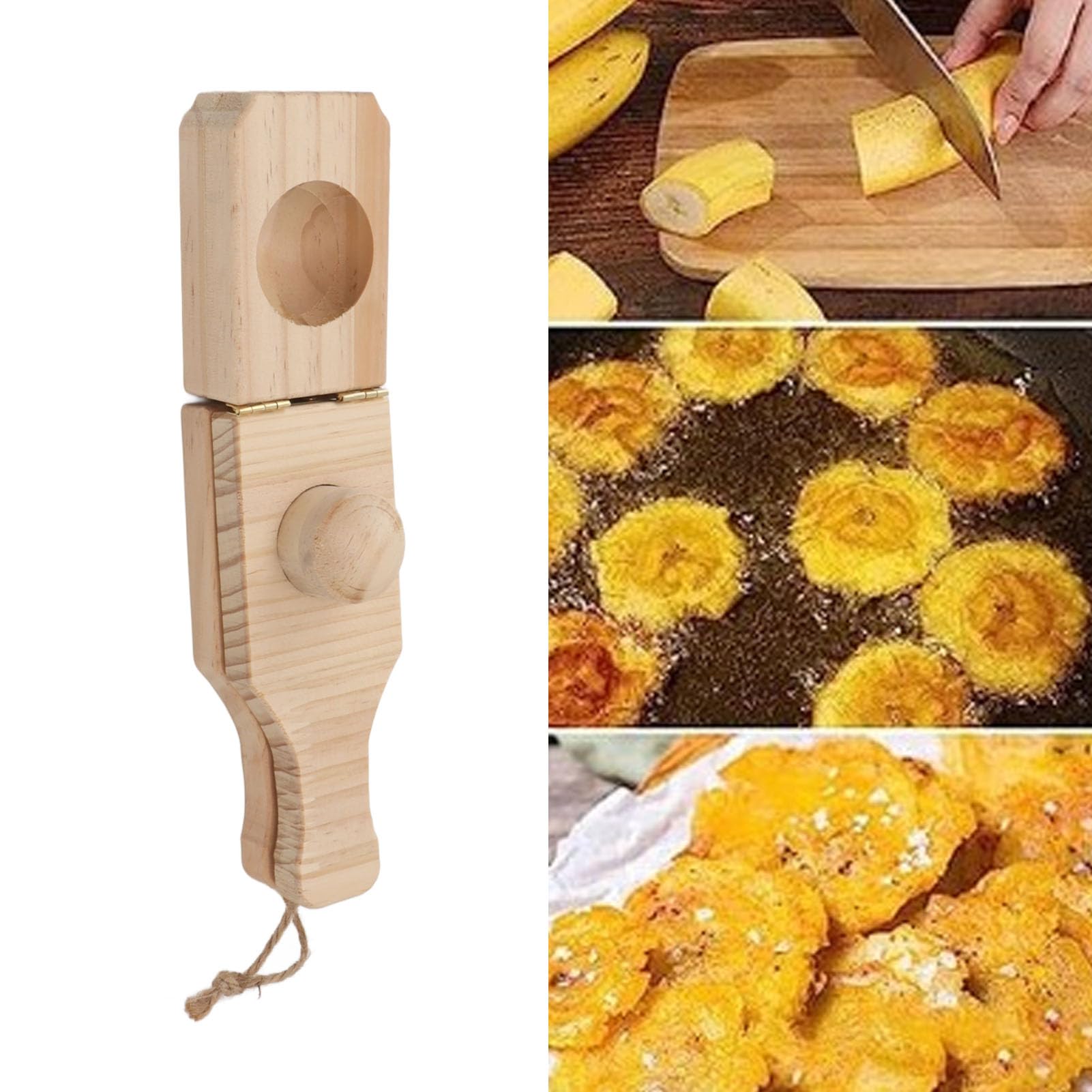 LOVIVER Tostonera Kochbananen-Zerkleinerer, Bananen-Presswerkzeug Für Gefüllte Kochbananen, Küchenutensilien, Tostones Maker Holz-Kartoffelstampfer