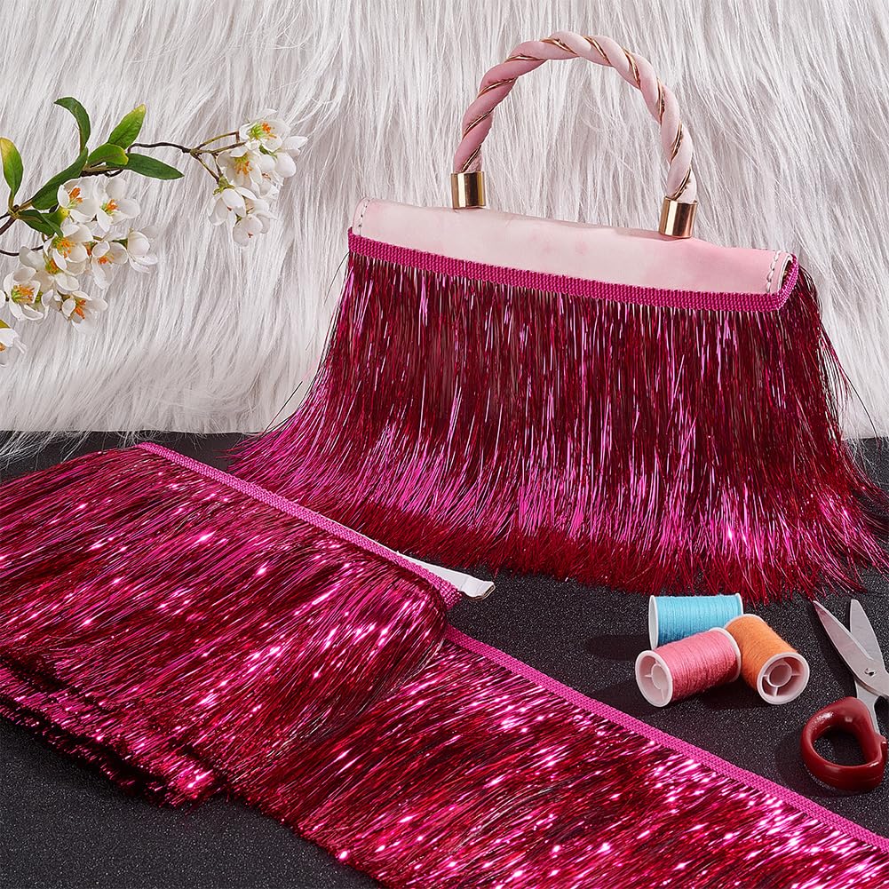 FINGERINSPIRE Lametta-Fransenbordüre, Mittelgroß, Violett-rot