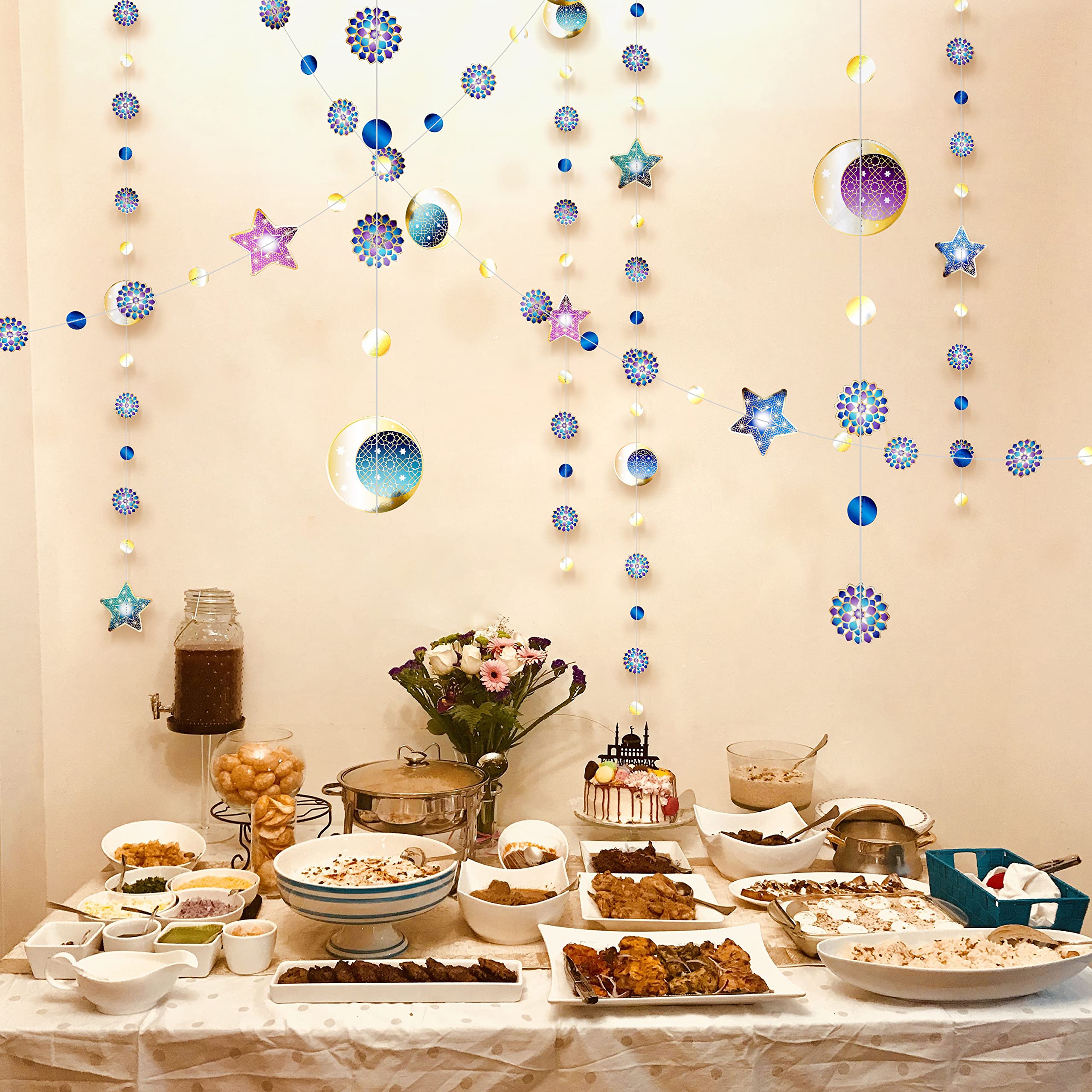 Einzigartiges Design: Metallisch matt und grob kombiniertes Design machen diese Girlande so schön und einzigartig, wunderschöne Stern- und Kreis-Kombination mit metallischem Glanz, mehr-geformtem glitzerndem Stern und Kreis in verschiedenen Größen, machen eine völlig andere Party für Sie. Funkelnde goldene Stern & Kreis Girlanden: - 3 Stück Papierstern-Banner, je 4 m, Gesamtlänge beträgt 12 m. Entwirren Sie die gesamte Strähne und hängen Sie sie vorsichtig auf, um Verdrehen zu vermeiden. Qualitätsgarantie – Hochwertiges Kartonpapier, nicht dünn und leicht zu biegen, doppelseitige Sterne, kein Glitzer fällt ab, metallisch glänzend ohne Kratzer, stabile Schnur. Perfekte Ergänzung zu Party-Dekor. - Die Sterne sind von einer goldenen Linie zusammengenäht, kein Ausfallen von Glitzer, leicht zu verwickeln und bitte Girlanden vorsichtig ausrollen oder auswickeln, um Verheddern aufgrund der feinen Fadenfäden zu vermeiden. - Es peppt auf, dekoriert und beeindruckt bei den meisten Veranstaltungen wie Weihnachten, Zuhause, Hochzeiten, Taufen, Feste, Grillpartys, Babypartys, Gärten und so weiter. - Doppelseitig schimmernder Stern - Big Star Größe ist ca. Einfach zu montieren – Sterne und Kreise sind mit Silberfaden genäht. - Sie können sie an Wänden, Bäumen, Tischen, Fenstern, Lichtern oder Türen hängen, um eine schillernde Atmosphäre zu schaffen, um Sternbild-Geburtstagsparty, Klassenzimmer-Party, Hochzeitsfeier, Babyparty, Neujahrsparty oder andere Partys zu schaffen. Die Girlanden können in verschiedenen Längen geschnitten werden. Eid Mubarak Banner Pack Of 6 Shinning Lantern Crescent Moon Star Garland Kit For Mond Sterne