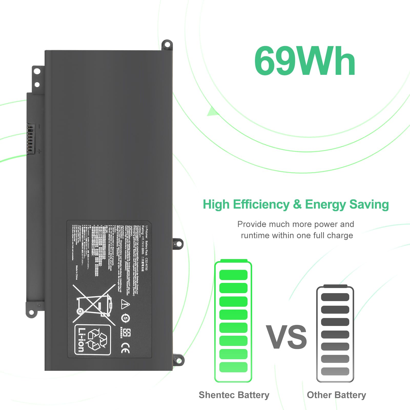 WYGUO C32-N750 C32N750 Laptop Battery Replacement For Asus N750 N750J N750JK N750JV N750Y47JK-SL N750Y47JV-SL Series