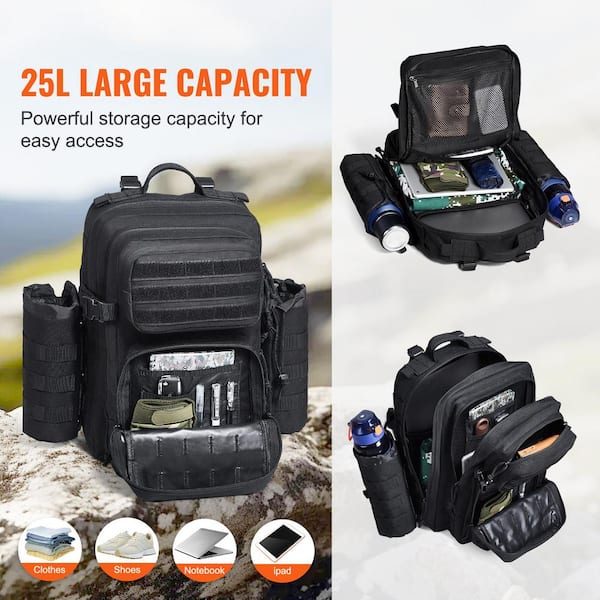 Der Militärrucksack ist mit Seitentaschen und einer wasserdichten Fronttasche ausgestattet. Dieser große Reiserucksack sorgt dafür, dass alle wichtigen Dinge beim Wandern, Camping, Militär, Reisen oder EDC organisiert sind Vielseitiger Reiserucksack: Großer Rucksack für Reisen, Militär, Camping und Wandern. Maße: 48,3 x 29 x 17 cm; Militärrucksack für Damen und Herren fasst 25 Liter. Einfache Wartung und MOLLE-System: Der Armee-Molle-Rucksack aus einfach zu reinigendem Polyester; MOLLE-Rucksack-System auf der Vorderseite und den Seiten zur Befestigung zusätzlicher Taschen am Rucksack für Herren – idealer Notfallrucksack und Militär-Rucksack Er ist ideal als verdeckter Tragerucksack, EDC-Rucksack oder Wandertasche für Damen Mardingtop 75l Taktischer Rucksack M-Tac - Large Mission Pack 25 L - Rucksack - Black Rucksack Herren Groß Tactical backpack with a capacity of 25 liters made of durable and abrasion-resistant polyester. It will work well for both hiking/survival and everyday use. The model features laser-cut holes for the Molle mounting system, a velcro panel and a chest strap CCW Militärtasche – Campingtasche besteht aus verschleißfestem Nylon und Polyester. M-Tac Large Mission Pack 25 l Backpack - Black