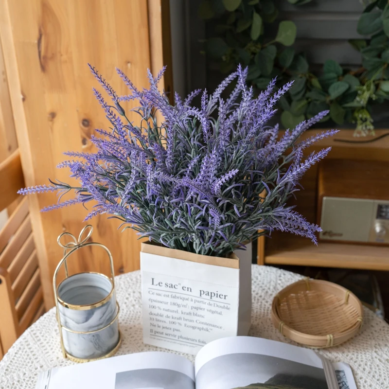 LESING Künstliche Lavendelblumen Mit Vase, Künstliche Lavendelpflanzen In Dekorativer Metallvase, Rustikale Vintage-Blumen Für Zuhause