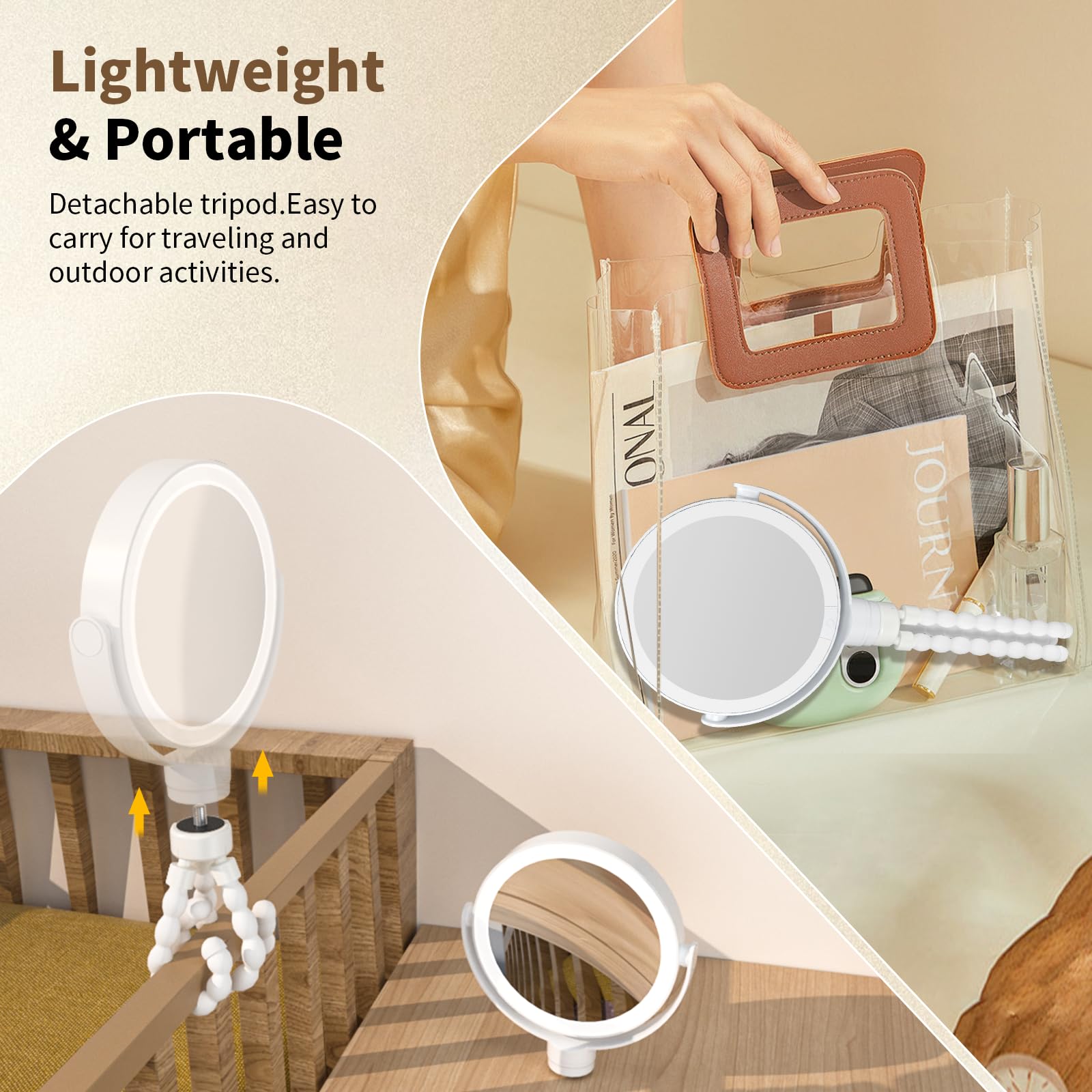 Kintion Reise-Schminkspiegel, Tragbarer Schminkspiegel Mit Beleuchtung, Um 360° Drehbarer Led Schminkspiegel, 3-farbig Dimmbare Beleuchtung, Wiederaufladbarer Kosmetikspiegel Für Den Tisch, Weiß