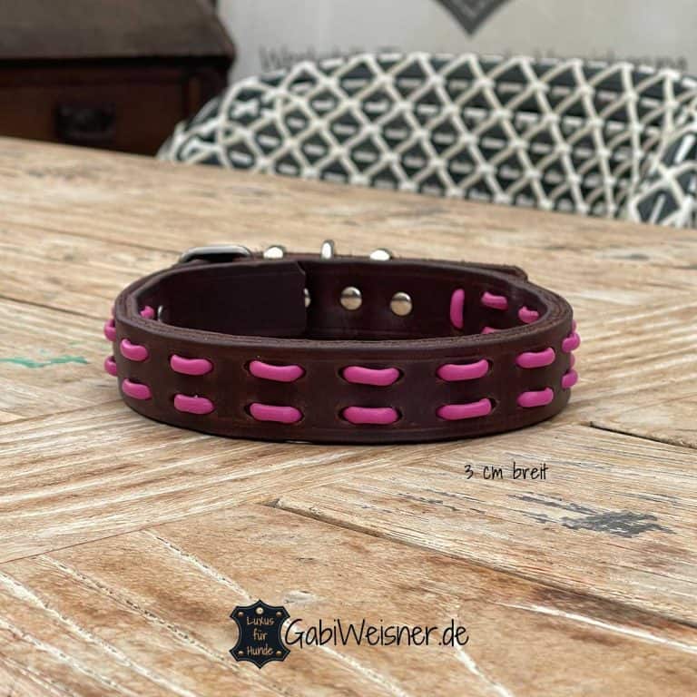Hundehalsband SET Aus Leder In Pink Und Schwarz, Luxus Für Große Hunde