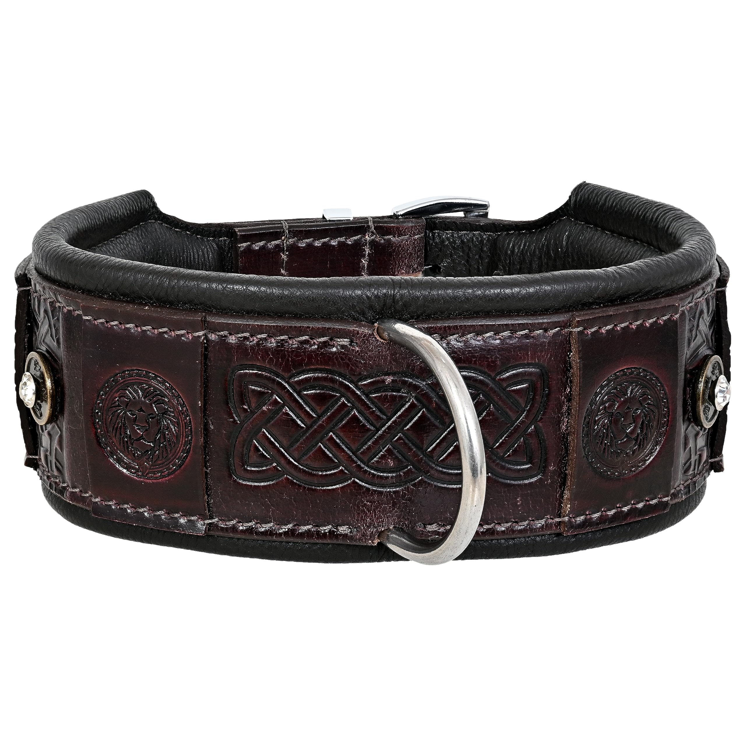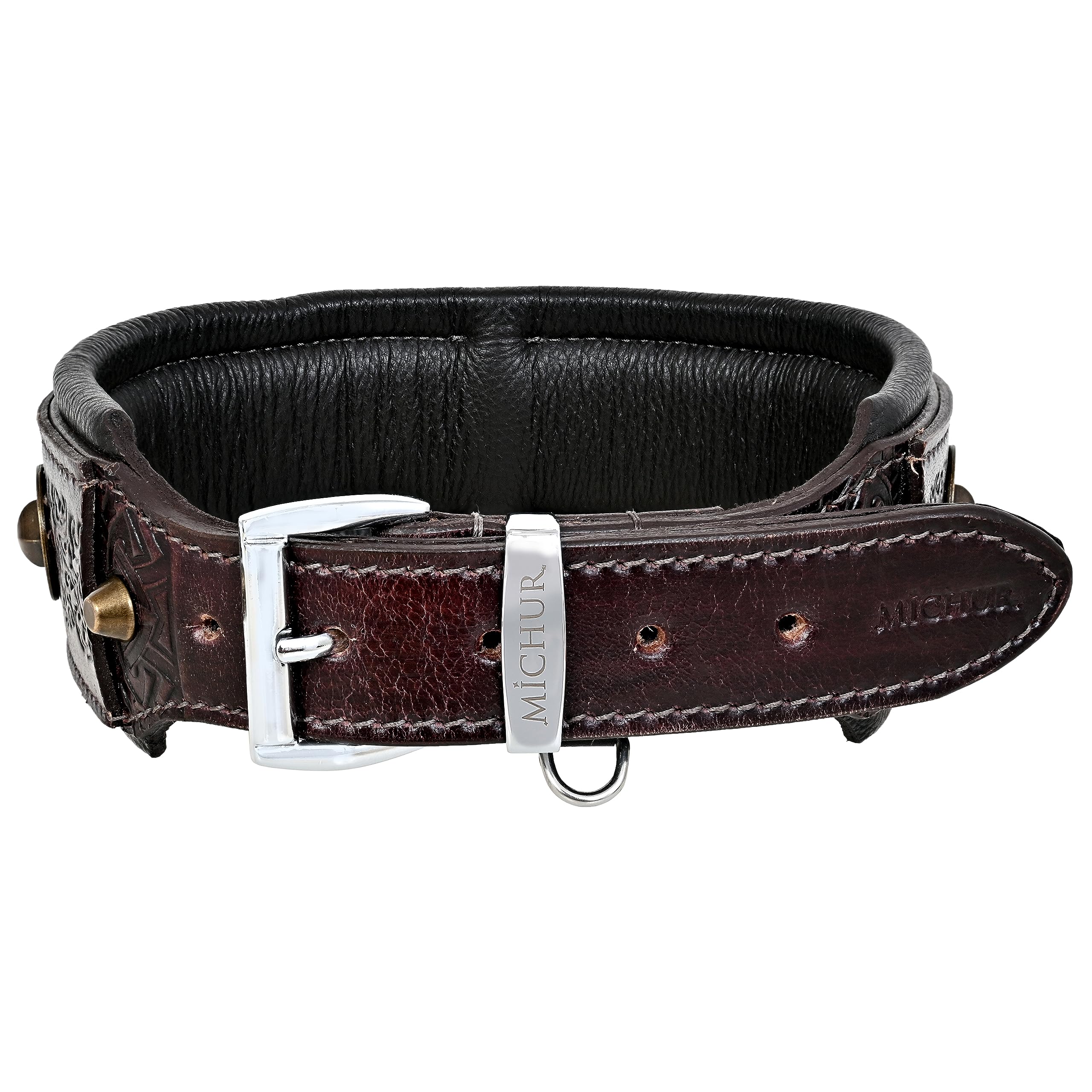 MICHUR Luis Hundehalsband Leder, Lederhalsband Hund, Halsband, Braun Mit Blauen Akzenten Und Schönem Stanzmuster, Leder, In Verschiedenen Größen Erhältlich, Halsumfang 51-58,5cm (Gesamtlänge 65cm