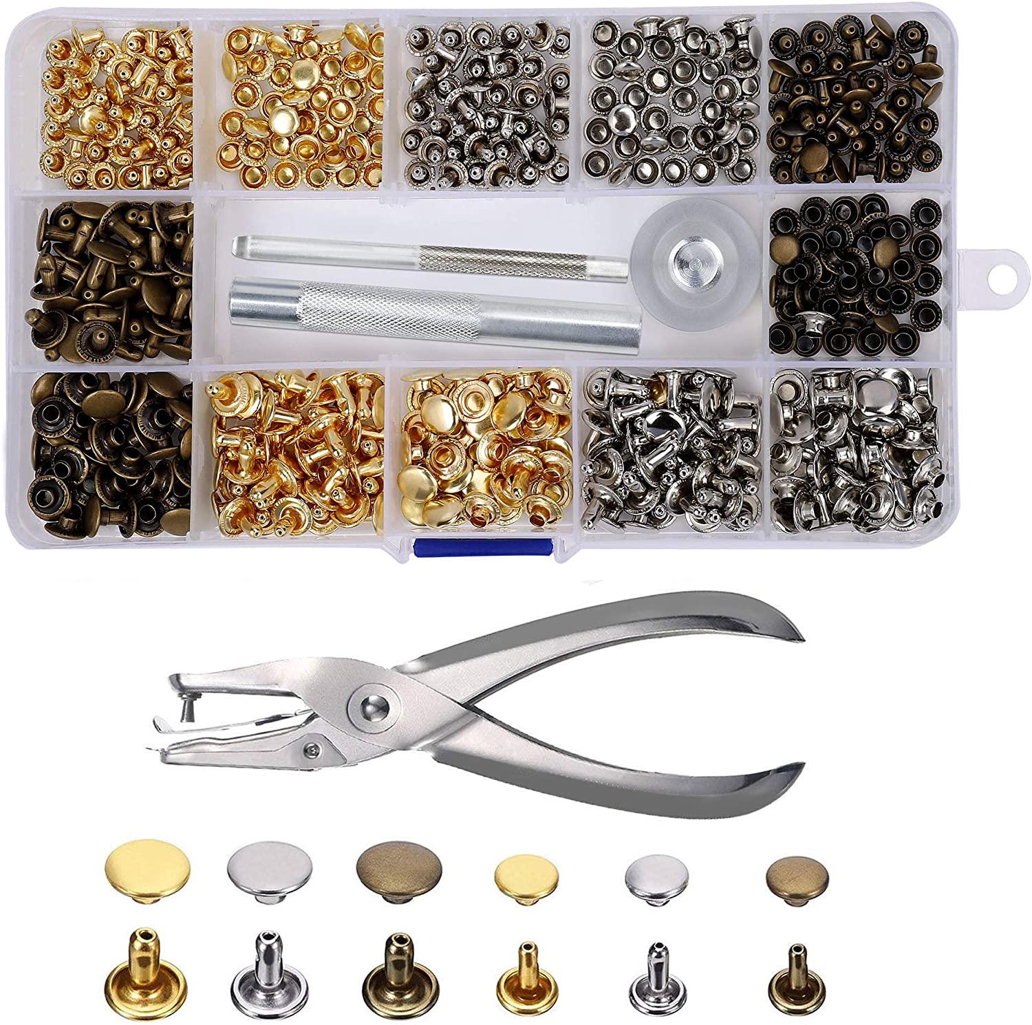 100x Ledernieten, 10 X 10 Mm, Doppelkappe, Nieten, Druckknöpfe Doppelkopfnieten für Handwerk, Schuhe, Taschen, Tücher, Reparatur, Fassung, Stollen, Lederkunsthandwerk von Wedding Decor, 100er-Pack, metall, gold, 10 mm Mit einem Doppelkappen-Design bieten diese Ledernieten und Druckknöpfe eine feste Verbindung und sind auch nach mehreren Wäschen nicht leicht zu biegen. Hinweis: Enthält 3 Setter-Werkzeuge und bietet detaillierte Installation für einfache Installation. Hergestellt aus rostbeständigem und korrosionsbeständigem Metall, das eine lange Lebensdauer gewährleistet. Geeignet für Lederhandwerksprojekte wie Dekoration und Reparaturen. Die glatte Oberfläche behält ein poliertes Aussehen, das nicht verblasst. Diese Nieten und Druckknöpfe aus Leder mit Doppelkappendesign sorgen für eine feste Verbindung und verbiegen sich auch nach mehrmaligem Waschen nicht so leicht.Geeignet für DIY-Lederprojekte wie Dekoration und Reparaturen.Kann für Armbänder, Hüte, Jeans, Gürtel, Schuhe, Jacken, Kleidung, Haustierhalsbänder und mehr verwendet werden Kaufen Sie Schraubnieten, Massive Ledernieten für Leder bei , erhalten Sie mehr Lederhandwerk-Nieten in verschiedenen Größen Money Back Guarantee ensures that buyers receive the item they ordered or get their money back. Größe – Dieses Ledernieten-Set enthält 100 Sets von 10 mm x 10 mm Nieten, geeignet für 5–7 mm dicke Stoffe.