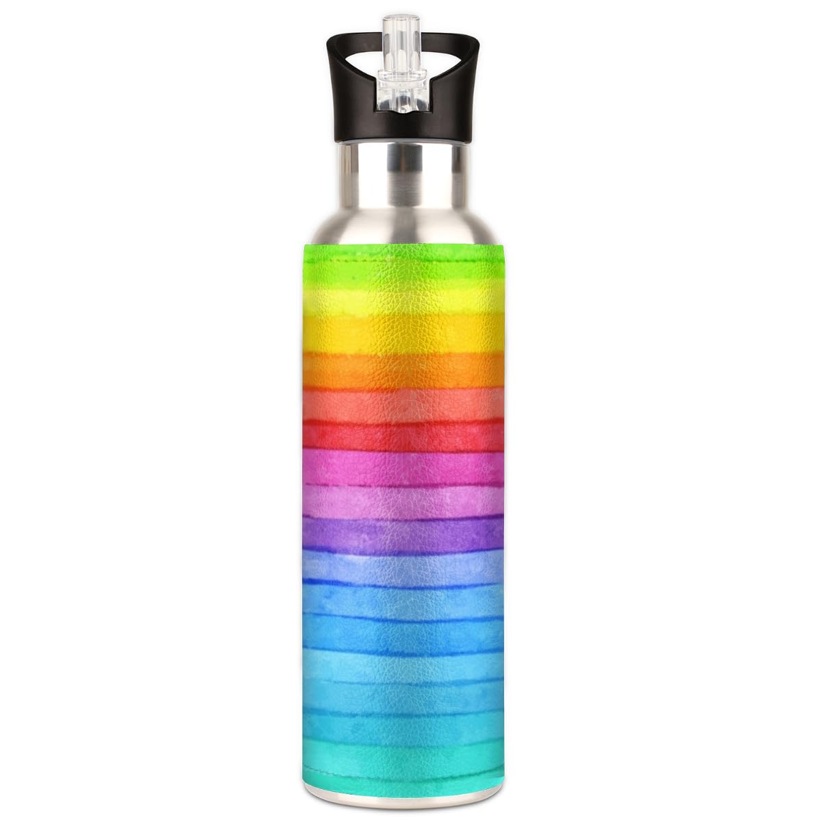 Trinkflasche Mit Strohhalmdeckel, Regenbogen-Leopardenmuster, Isolierte Edelstahl-Thermosflasche Für Jungen, Mädchen, Fitnessstudio, Sport, Auslaufsicher, 600 Ml