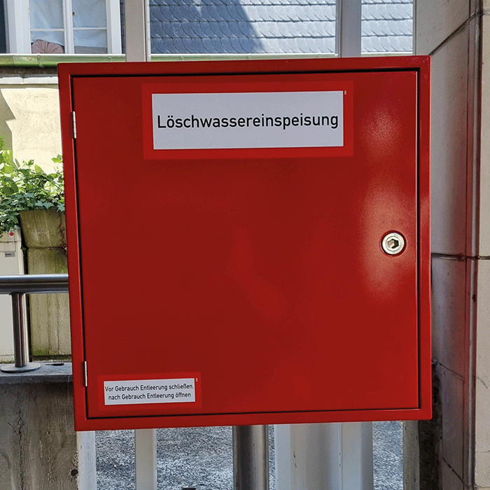 Wenn die Lichtquelle ausgeschaltet wird, gibt das Material das gespeicherte Licht in Form eines Leuchtens ab, wodurch es im Dunkeln sichtbar wird. Diese Eigenschaft macht nachleuchtende Materialien ideal für Brandschutzschilder. Schild Alu Entleerung Löschwasserleitung trocken nach DIN 4066, DIN 14461-2, DIN 14462Material: Aluminium Größe: 74 x 210 mmArtikel-Nr., : 4794A74 Rückflussverhinderer ohne Entleerung 22 mm (Press Löschwasseranlage trocken vom Fachbetrieb Feuerwehr Lernbar: Löschwasseranlage „trocken Die auffällige rote Hintergrundfarbe mit weißer Schrift sorgt dafür, dass die Botschaft auch aus der Ferne gut sichtbar ist. Diese zweisprachige Beschilderung, mit Texten auf Deutsch und Englisch, gewährleistet eine klare Kommunikation und erhöht die Sicherheit in internationalen Umgebungen. Löschleitungen | Prüfung Wartung Instandsetzung - Möller Brandschutz GmbH Für die Pfostenmontage wählen Sie Befestigung: Rohrschelle.