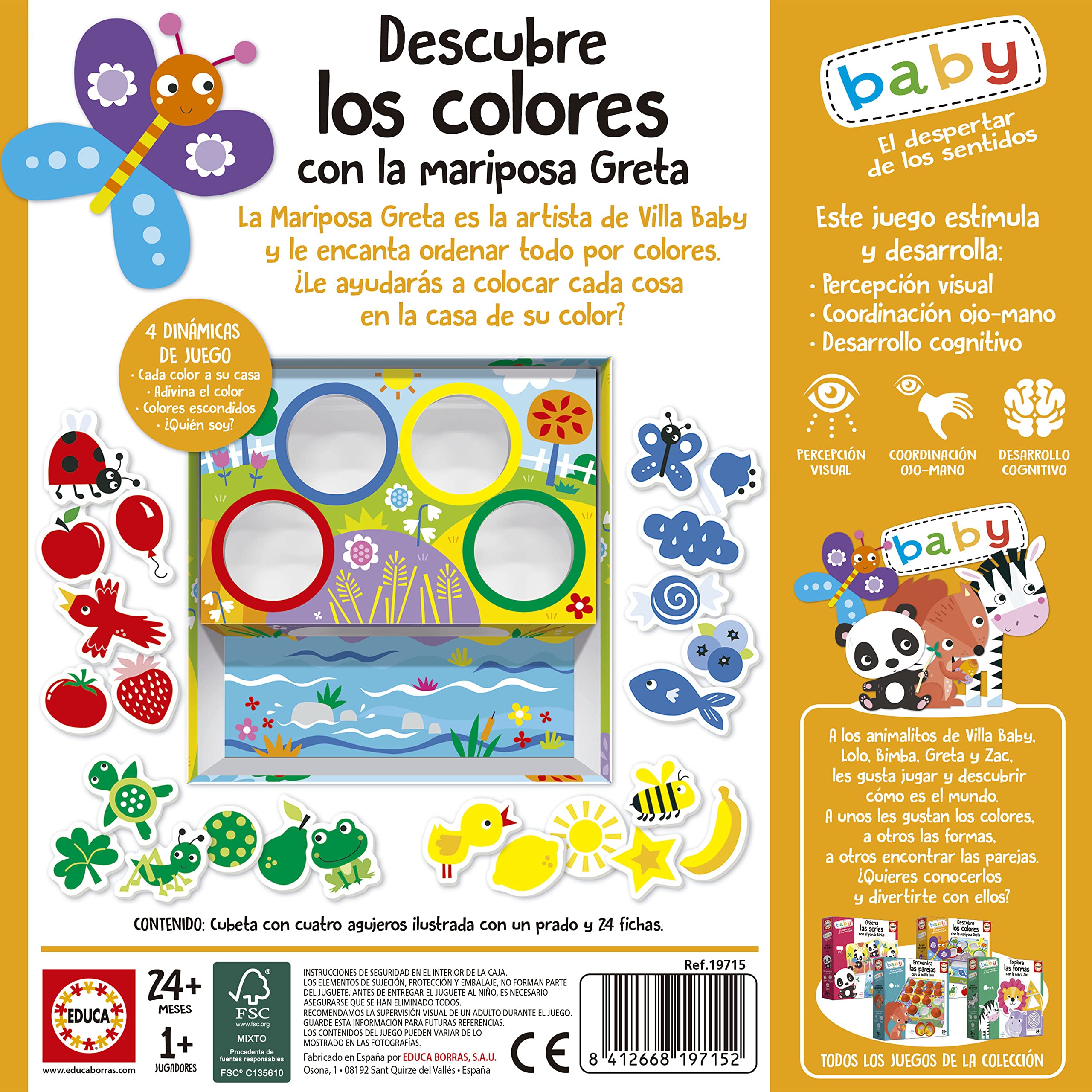 Educa Entdecken Sie Die Farben Mit Dem Greta Butterfly | Lernspiel Für Kinder Mit Bunten Teilen Zur Stimulierung Der Visuellen Wahrnehmung, Auge- Hand-Koordination Und Kognitiver Entwicklung (19715