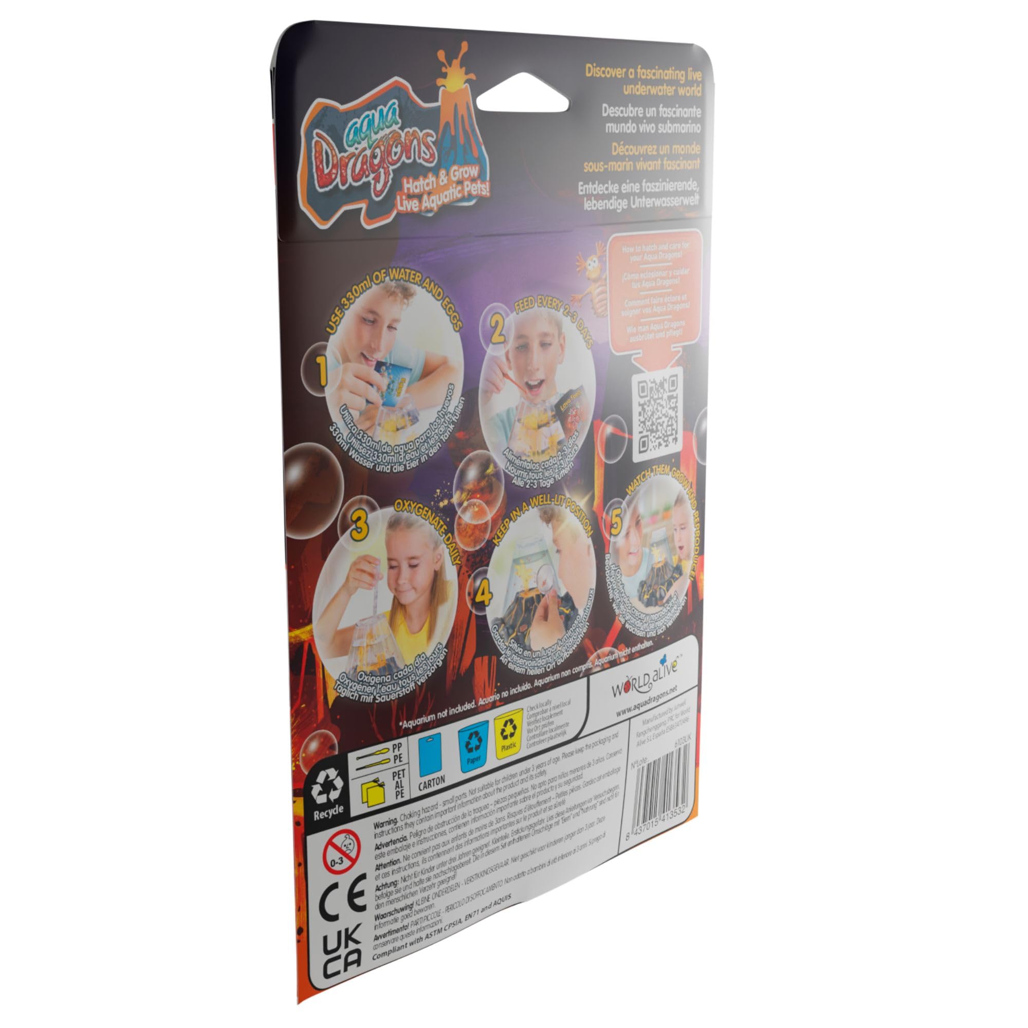Bitte bewahren Sie diese Verpackung und die Gebrauchsanweisung für dieses Produkt auf, da sie wichtige Sicherheitsinformationen enthalten. AUFREGENDES ABENTEUER: Geben Sie Aqua Dragons-Eier in die Wasserflasche und beobachten Sie, wie sie innerhalb von 48–72 Stunden schlüpfen. Wasserdrachen: Sie können bis zu 1,5 cm lang werden. Produktbeschreibung Entdecken Sie die Unterwasserwelt Aqua Dragon, ein anregendes MINT-Lernspielzeugset für Kinder ab 6 Jahren. Sie können beobachten, wie sie in Ihrem eigenen Zuhause schlüpfen, wachsen und gedeihen, was sie zu einem lustigen und lehrreichen Haustier für Kinder und Familien macht. Dieses Komplettset enthält alles, was Sie brauchen: Eier, Futter, einen Fütterlöffel und einen Luftsprudler für mühelose Pflege. Sie eignen sich perfekt als erstes Haustier und eignen sich hervorragend für MINT-Projekte in der Schule oder zu Hause und bieten ein einfaches und unterhaltsames Lernerlebnis. Baby-Drachen, die Eier ausbrüten | Kostenlose Vektor Pets Alive Aqua Dragons Schlüpfen Und Wachsen Lebende Wassertiere, Unterwasserwelt- Lernspielzeug-Set, 400-ml-Tank, Deluxe-LED-Licht, Funktioniert Mit Zwei AAA-Batterien, Spielzeug Für Kinder Ab 6 Jahren Salzkrebse Züchten Set Beobachten Sie lebende Aqua Dragons, die bis zu 1,5 cm groß werden und in Ihrem eigenen Hatch'n'Grow-Aquarium gedeihen. Hinweis: Die in diesem Kit enthaltenen Eier- und Lebensmittelpakete sind nicht für den menschlichen Verzehr bestimmt. Palworld Ausbrüten Liste: Alle Eier und wie ihr sie findet Erleben Sie den faszinierenden Lebenszyklus dieser Kreaturen, was es zu einem idealen Geburtstags- oder Weihnachtsgeschenk macht und für anhaltendes Lernen und Freude für alle Altersgruppen sorgt., Warnhinweise Aufmerksamkeit. Palworld Ausbrüten Liste: Alle Eier und wie ihr sie findet