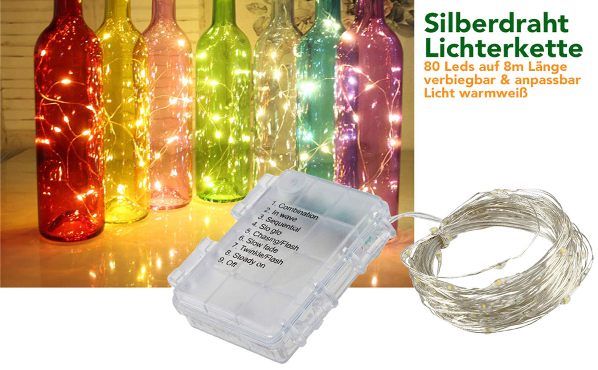 Sie sind sicher zu berühren, während sie eingeschaltet sind und haben eine 50 m lange beleuchtete Länge, um Ihnen beim Erstellen Ihrer saisonalen Szene zu sparen. Ein 10 m langes Kabel sorgt für eine einfache Installation dieser Leuchten. Diese 1000 LED-Leuchten bieten Ihnen einen volleren, helleren Look, wo immer Sie sie platzieren. Lichterkette 100 m, 1000 Convex LEDs 8 mm, warmweiß, grünes Kabel Wenn Sie mit diesem Artikel nicht vollständig zufrieden sind, zögern Sie bitte nicht, unseren Kundenservice zu kontaktieren. Geringer Stromverbrauch und langlebige LED-Leuchtmittel. Gleichzeitig verbraucht die moderne Beleuchtung nur wenig Strom und gibt keine UV-Strahlung ab. Retro Lichterketten online kaufen Weihnachtsbeleuchtung Outdoor Lichterkette 10 M, 100 LEDs Warmweiß, Transparentes Kabel, Erweiterbar - SMART CONNECT Lichterkette 1000 IP44 wasserdicht, für den Innen- und Außenbereich geeignet. Einfach zu bedienen: Für dieses Produkt sind keine Batterien erforderlich, wodurch es super einfach zu bedienen ist. Die verschiedenen Lichteffekte werden durch eine Taste am Steckeradapter gesteuert, was es einfacher als je zuvor macht, Ihre gewünschten Lichteffekte zu erzielen. Niedrige Spannung für Schutz, berührungssicher. Bringen Sie diesen Winter den Weihnachtsgeist zu Ihnen nach Hause mit unserer großen Auswahl an luxuriösen Weihnachtslichtern. NETTA Lichterkette - Warmweiß mit transparentem Kabel 50 m Leuchtlänge, 1000 LEDs. Einfach einstecken und einschalten, um jedem Raum oder Bereich einen warmen, festlichen Glanz zu verleihen. Die Glühbirnen sind 5 cm auseinander gesetzt, um sicherzustellen, dass Sie über diese Weihnachtszeit einen vollen festlichen Glanz erhalten. Das Kabel besticht durch eine transparente Optik, wodurch es unauffällig bleibt. Große Lichterkette mit 1000 kleinen warmweißen Leds ideal für den Weihnachtsbaum im Winter bis 2,70 m Höhe oder im Sommer als Dekokette für Pavillon, Balkon, Garten oder Partyzelt. Netzbetrieben mit IP44 Adapterstecker ist diese Lichterkette zudem ideal für den Aussenbereich geeignet. Produktdetails: - Lichterkettenfarbe: Dunkelgrün - Bestückt mit 1000 LED`s - Energieeffizienzklasse: F... Transparentes weißes Kabel., Dunkelgrünes Kabel. Zur Stromversorgung benötigt die Lichterkette 2 AA Batterien, welche separat erhältlich sind.