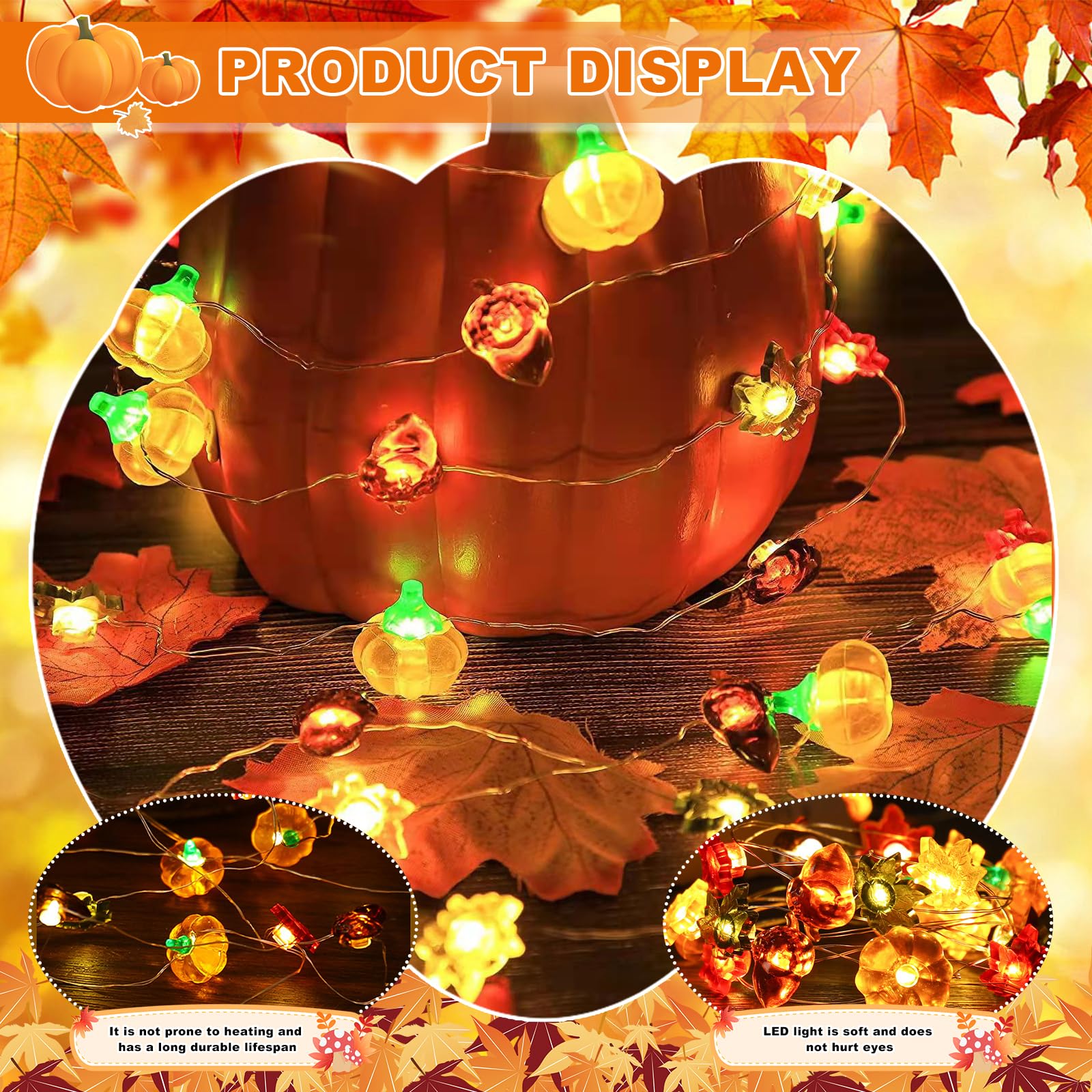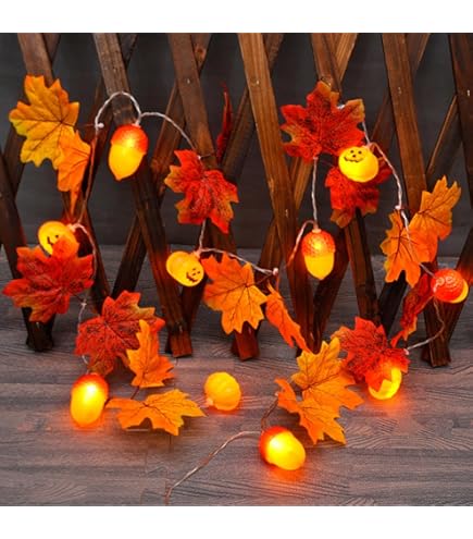 【DIY-Formen und vielseitig einsetzbar】 Der Draht der Lichterkette ist weich und leicht zu biegen und kann nach Belieben in verschiedene Muster geformt werden. Das Niederspannungsdesign ist energiesparend und sicher und benötigt weder Steckdose noch USB-Kabel. Sie lässt sich flexibel zu einer Girlande wickeln oder als Fensterbank- oder Wegdekoration verwenden. So lässt sie sich problemlos im Innen- oder Außenbereich platzieren. 【Herbstliche Lichterkette mit Ahornblättern】Diese Lichterkette mit Ahornblättern und Kürbissen ist ca., 3 Meter lang. und setzt ein einzigartiges und warmes visuelles Highlight für die Feiertage. LED Lichterkette Herbst Deko LED Lichterkette Herbst Deko, 3M 30 LED Kürbis Ahornblätter Eichel Lichterketten, Herbst Ahornblatt Kürbisse Lichterkette, Batteriebetrieben, für Thanksgiving- und Halloween-Dekorationen [Energieklasse A] Marke Led Weihnachtsdeko Herbst Lichterkette,3 20 LED Ahornblatt Lichterketten,Ahornblätter Lichterkette Fenster Innen Sie eignet sich daher für Familienfeiern und als Weihnachtsdekoration und ist sicher für Erwachsene und Kinder. Stil Ahornblatt Kürbis Eichel. YUYWWAN Herbst Lichterkette - 3m LED-Deko mit Kürbis & Ahornblatt Herbst Deko Eichel Fensterdeko hängend Holzanhänger 6er Set