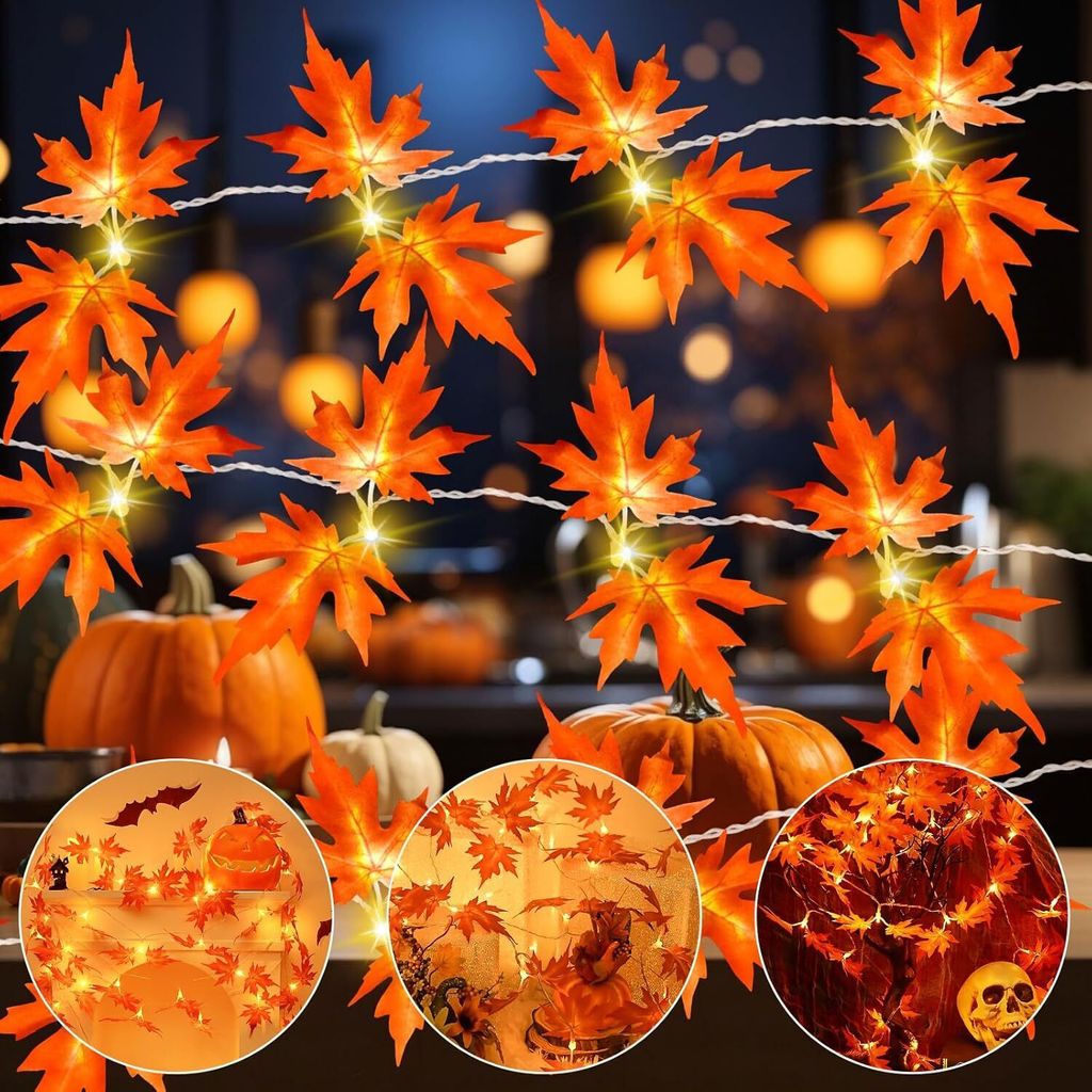 Herbst Lichterkette,3 20 LED Ahornblatt Lichterketten,Ahornblätter