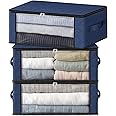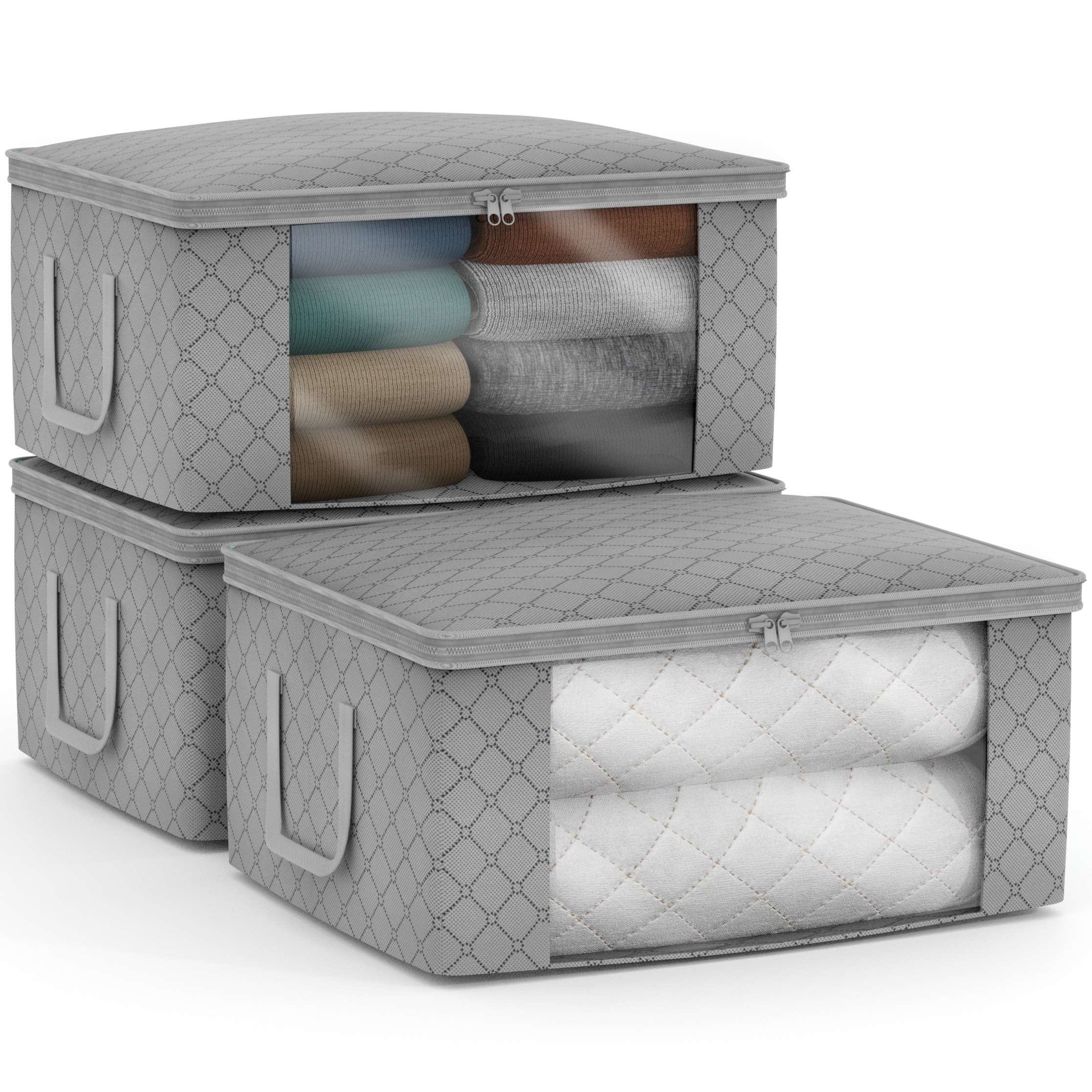 Lifewit 3 Pack Clothes Storage Bag, Foldable Storage Bin Closet Organizer With Reinforced Handle, Sturdy Fabric Blanket Storage With Clear Window, Storage Containers For Clothing, Bedding, Gray