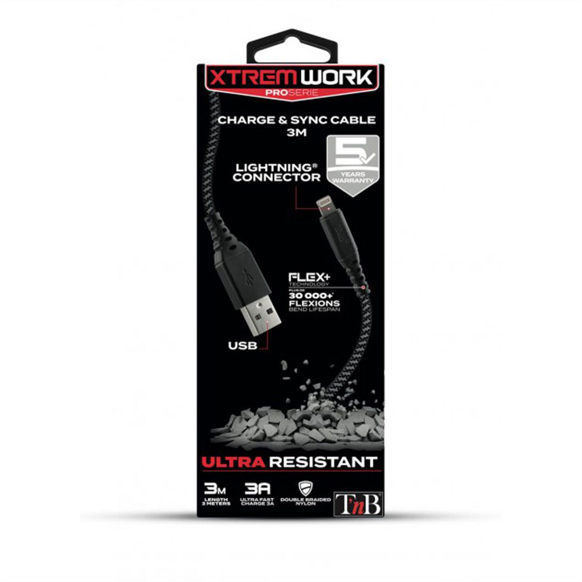 Mobigear Nylon USB-A Auf Apple Lightning MFI Kabel 3 Meter - Schwarz 610528