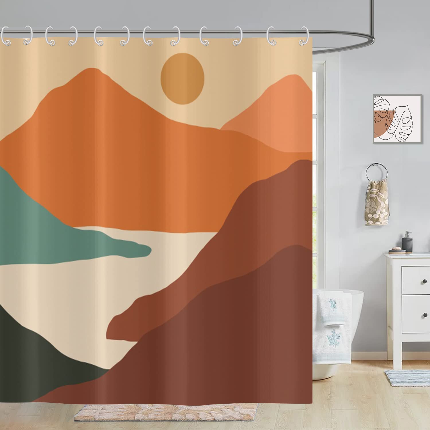 Dieser Badezimmer-Duschvorhang kann Ihnen eine glückliche Badezeit bieten. Tolle Dekoration: Diese Boho-Duschvorhang mit Blättern für das Badezimmer verwenden HD-Drucktechnologie für lebendige Farben, klares Bild, einzigartiges Muster, kein Verblassen. Dieser Duschvorhang mit Einrasteinsatz misst 180,3 x 188 cm und passt auf die meisten Badezimmer-Badewannen und Badezimmerfenster. Größe: Dieser schokoladenfarbene Duschvorhang aus der Mitte des Jahrhunderts hat eine Größe von 180,3 x 188 cm und ist geeignet für die meisten Badewannen und Badezimmerdekorationen, egal ob am Badezimmerfenster oder im Bohemian-Hotelbadezimmer. Dieses Set mit Duschvorhang und Liner zum Einrasten kann eine großartige Möglichkeit sein, Ihr Badezimmer zu dekorieren, den Raum aufzuhellen und einen Hauch von Natur zu verleihen. Pflegeleicht: Der Duschvorhang zum Einrasten kann bequem in der Maschine gewaschen werden, um ihn sauber zu halten und schnell zu trocknen, wenn es Falten gibt, bügeln Sie diesen Duschvorhang bitte sanft bei niedriger Temperatur, nicht bleichen oder im Trockner trocknen. Dieser Duschvorhang ohne Haken mit Einrastvorrichtung ist abstrakt, modern und böhmisch. Dieser schwarze Boho-Duschvorhang ohne Haken mit Futter bietet eine hervorragende Abdeckung für Standard-Badewannen; perfekt als ringloser Duschvorhang in Wohnungsbädern, Gästezimmern oder Schlafsäle ASDCXZ Duschvorhang Boho Style 180x180 Cm, Boho Abstrakt Kunst Sonne Blätter Linien Beige Bad Duschvorhänge Waschbar Polyester Textil Wasserdicht Duschvorhang Für Badewanne Mit 12 Duschvorhang Haken Die Einlagen zum Aufstecken haben sowohl Textur als auch Gewicht, während der Duschvorhang ohne Haken mit Liner-Design es Ihnen ermöglicht, den Duschvorhang ohne Haken mit Schnappverschluss und Liner schneller und einfacher in weniger als 15 Sekunden zu installieren oder zu entfernen, hochauflösende Muster und einfache Installation sorgen für ein angenehmes Badeerlebnis. Als transparentes SVG, Vek 3X (Hakenloser Duschvorhang Aus Waffelgewebe mit Einrastbarem Wichtigste Highlights · QUALITÄTSSTOFF:Polyester Stoff, Pflegeleicht, hydrophobe Eigenschaften, schnell trocknend, hemmen das Wachstum des Schimmels
