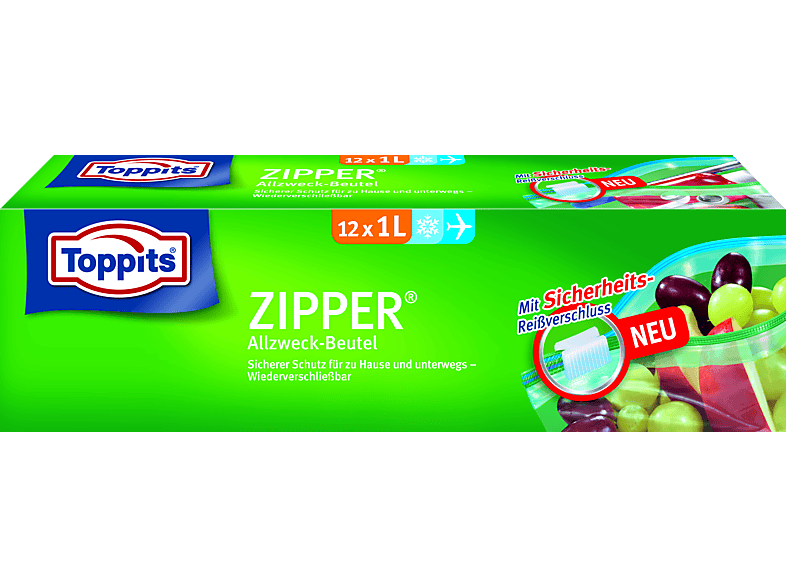 Vielseitig und sehr zuverlässig: In den Toppits Zipper Beuteln 1l lassen sich Lebensmittel perfekt einfrieren und frischhalten. Zudem eignen sie sich zum... Ideal zum Aufbewahren, für den Transport und die Sortierung von kleineren Gegenständen Mit Innovationsfreude und Liebe zum Detail entstehen Produkte zum Backen, Frischhalten, Einfrieren, Zubereiten und Aufbewahren Produktbeschreibung Allzweck-Beutel für zuhause und unterwegs. Ideal zum Aufbewahren, Transportieren und Sortieren kleinerer Gegenstände. Sie halten dicht, schützen, was wichtig ist und bringen Ordnung. Einfrieren: Die Zipper-Gefrierbeutel mit Sicherheits-Reißverschluss schützen gegen Gefrierbrand und halten länger frisch. Toppits: Kleine Helfer, große Auswahl für deinen Haushalt. Mit einem Zzzzzip - sicher dicht! Lieferumfang: 1 Verpackung enthält 12 Stück schnell entnehmbare Beutel aus 70 % recycelten Ressourcen. Ziplock Beutel Toppits Zipper Beutel - 1 Liter - 28 Beutel - 20x15 Cm- 1L Vorratspack Freezer Bags Nehmen Sie den Zipper einfach praktisch mit ins Flugzeug. Toppits Zipper 12 x 1L (12 x) - kaufen bei Toppits Zipper Allzweck-Beutel 20x15cm Vielfalt: Die hörbar verschließbaren Gefrier- oder Kultbeutel sind auch mit 1 oder 6 Liter Füllvolumen erhältlich. Mit dem vielseitigen Haushaltshelfer halten Sie Lebensmittel länger frisch und frieren diese ein. Auch als Variante mit 3 oder 6L Volumen erhältlich Toppits: Kleine Helfer, große Auswahl für deinen Haushalt. Mittels des integrierten Standbodens lässt sich der Beutel zudem leicht befüllen. Mit dem 1 Liter Fassungsvermögen entspricht der durchsichtige Beutel der EU-Handgepäckverordnung und darf mit in die Flugzeugkabine., Wiederverschließbar. Organisation: Die Allzweckbeutel sind dank robuster Materialeigenschaften spülmaschinengeeignet und bis zu 10-mal wiederverwendbar.