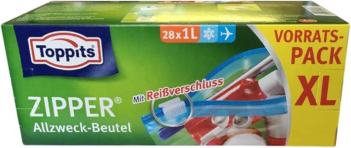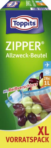 Toppits Zipper Beutel - 1 Liter - 28 Beutel - 20x15 Cm- 1L Vorratspack