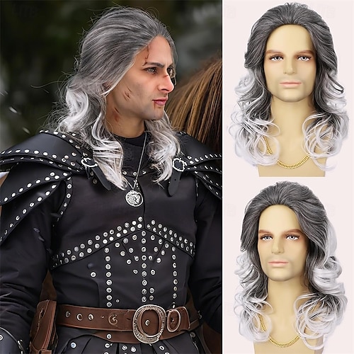 Yuehong Herren Lange Lockige Graue Große Bart Hexenmeister Cosplay Kostüm Bart Für Halloween Party Mit Hitzeresistenten Synthetischen Fasern