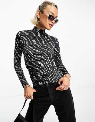 HUGO DACHORA - Long Sleeved Top - Black/white/black